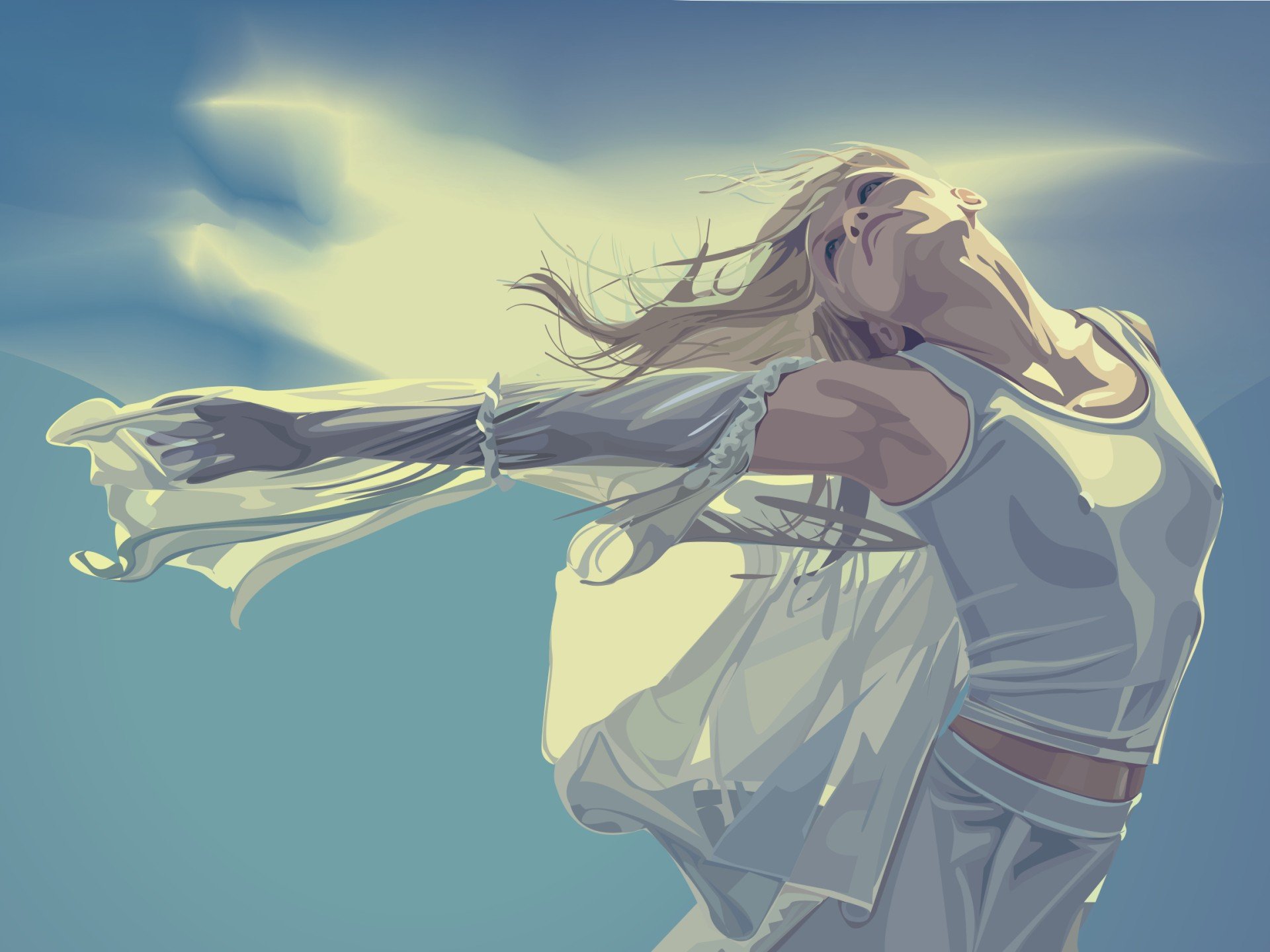 Beautiful girl dancing in the fiery hands of a demonBeautiful girl dancing in the fiery hands of a demon