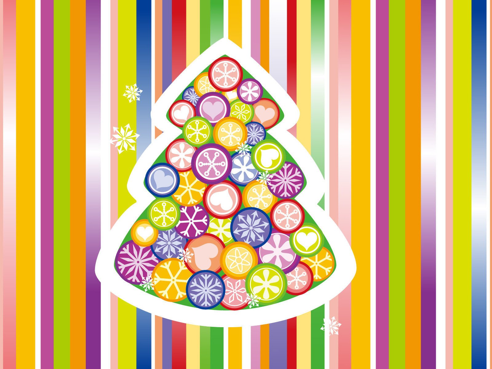 Christmas tree made of lollipops on a bright striped background