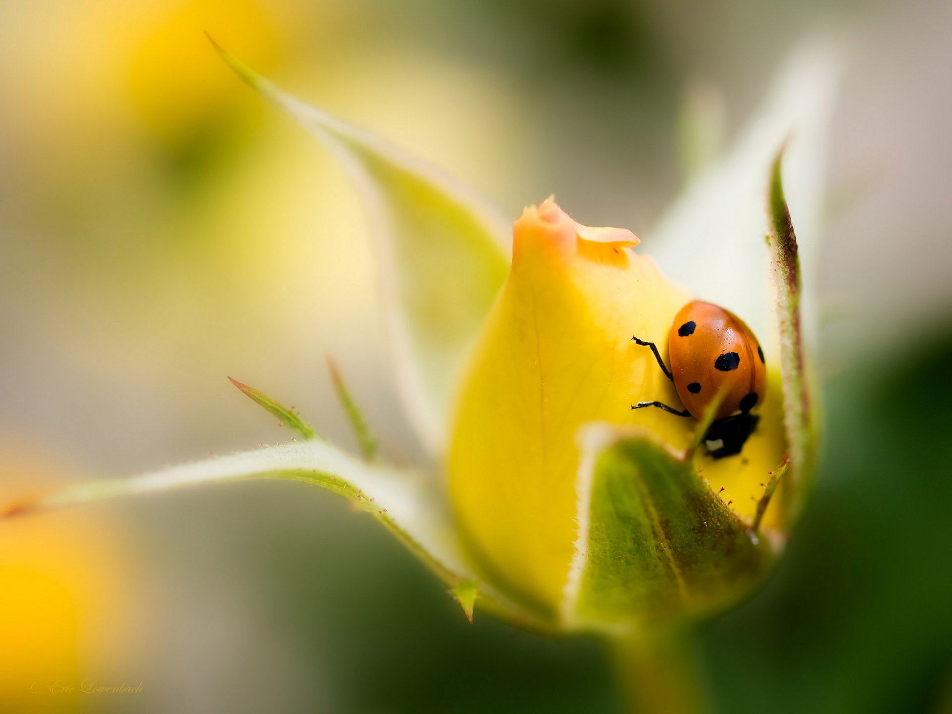 Ladybug on an unopened rosebud