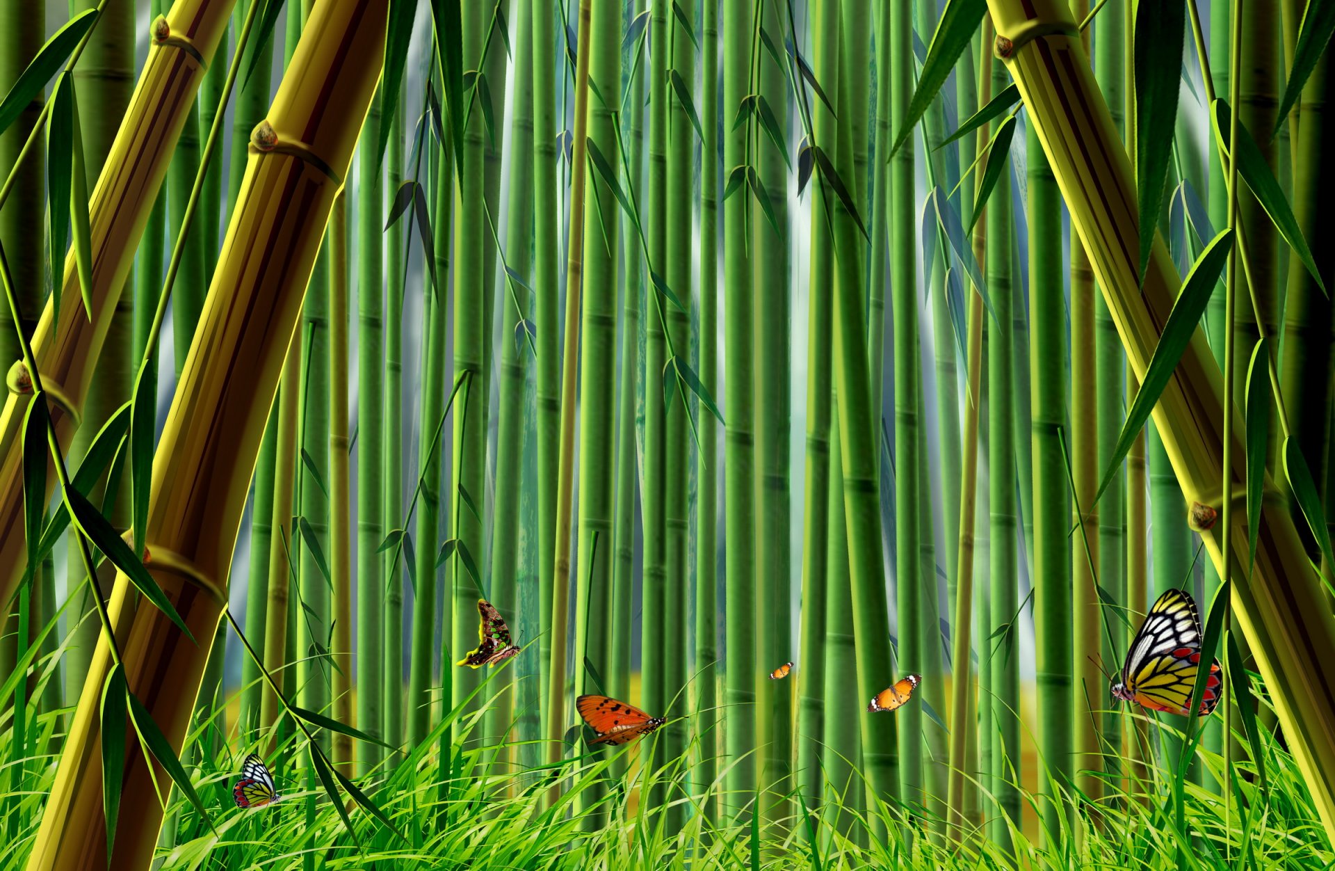 Colorful butterflies in the green grass