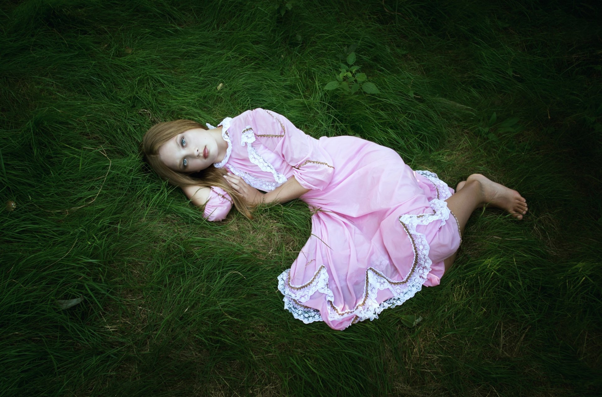 A girl in an antique dress with a watering can in her handsA girl in an antique dress with a watering can in her hands