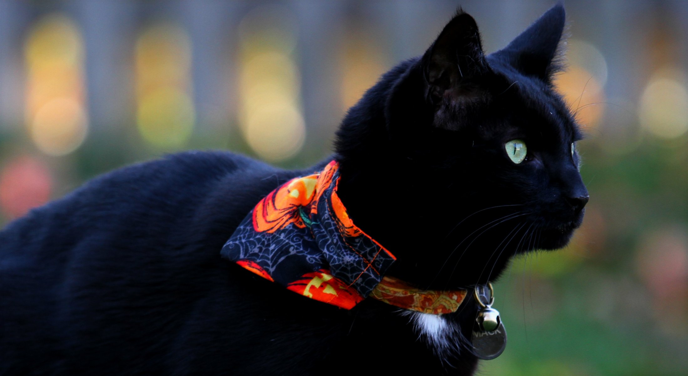 Black cat in nature in a scarf