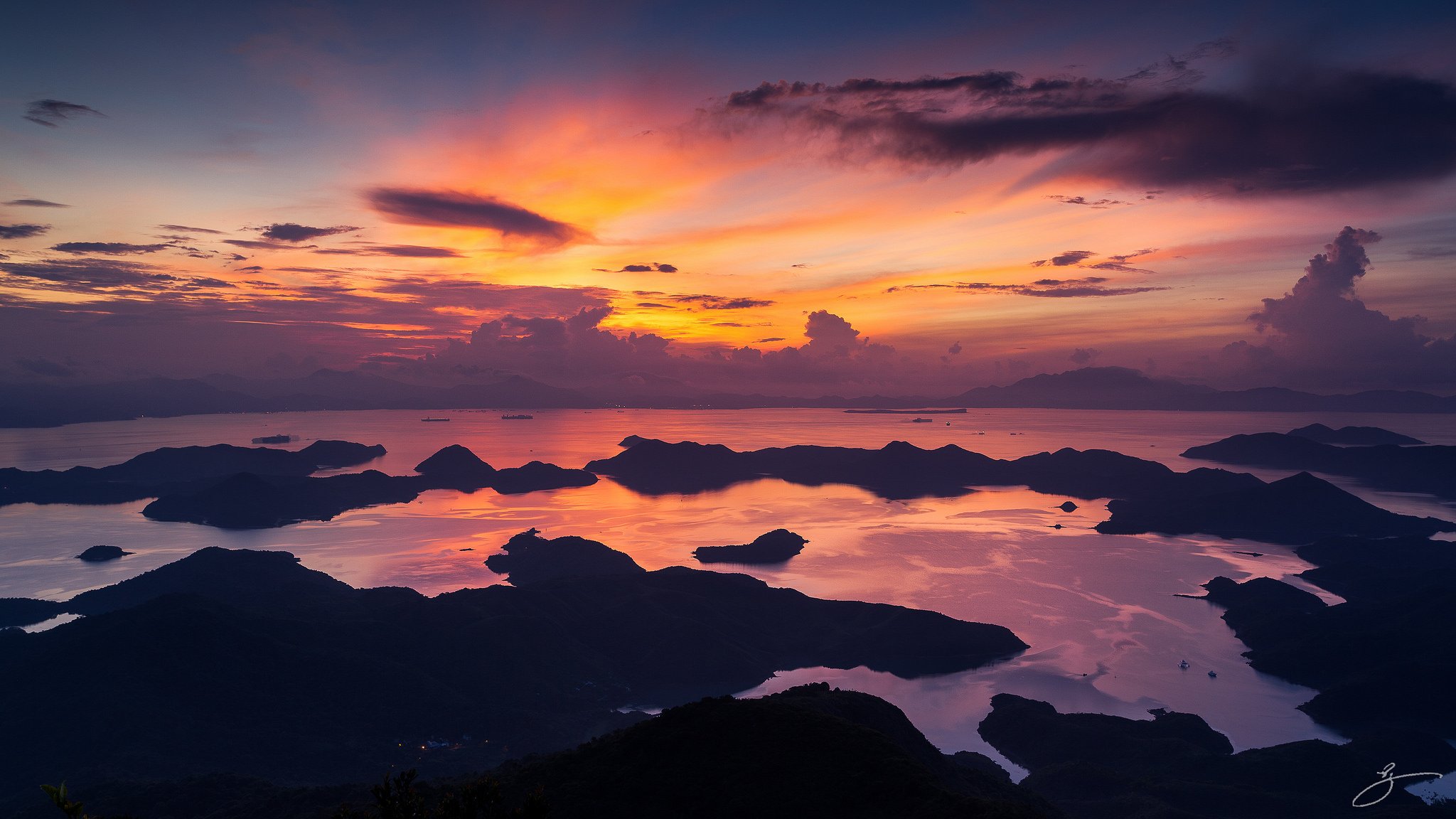 Supports are visible in the bay and the sunset is reflected in the waterSupports are visible in the bay and the sunset is reflected in the water