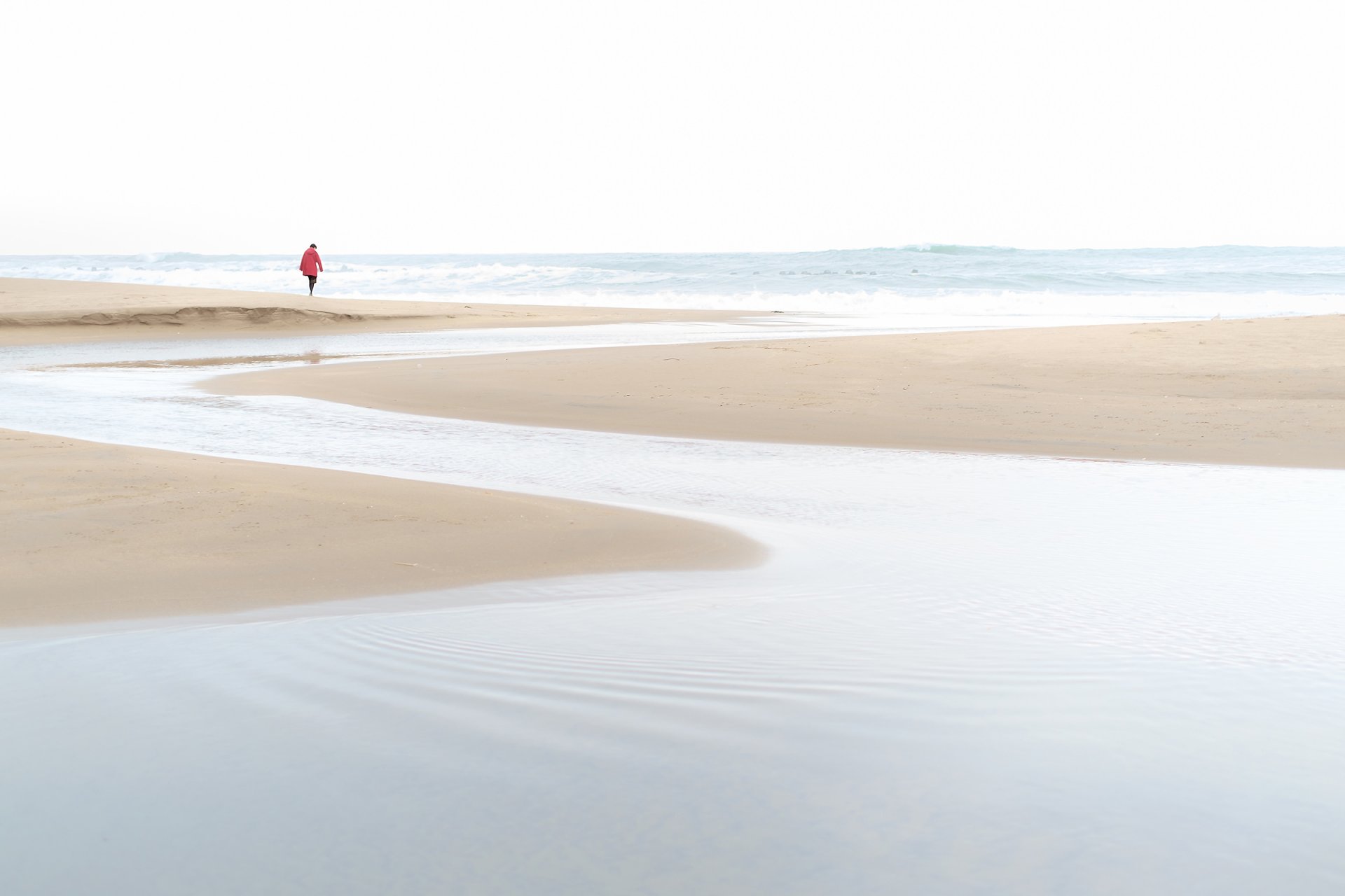 Beach. A woman on a towel. Coast