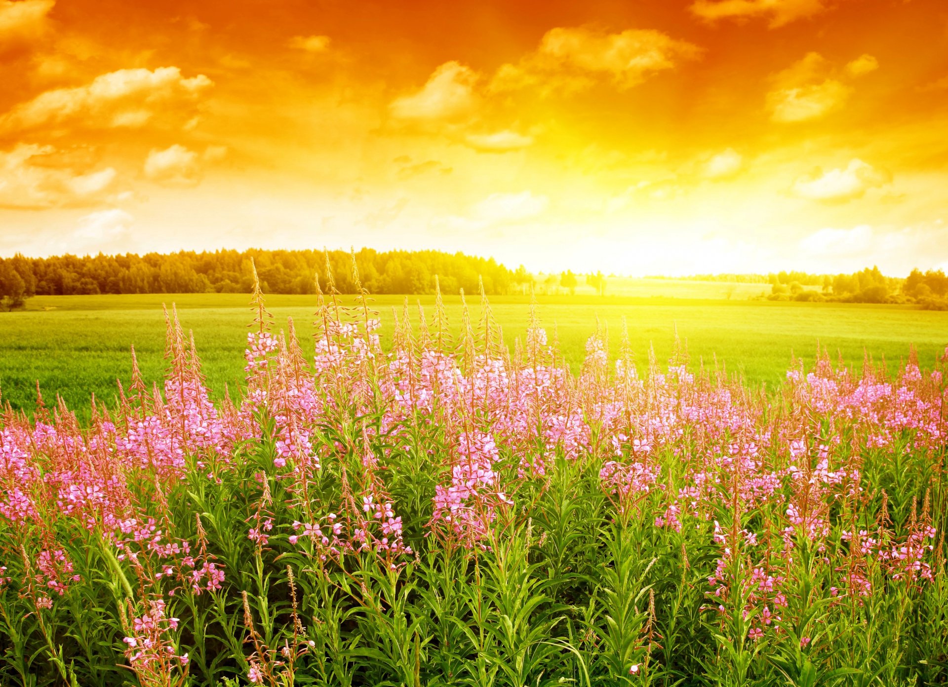 Wildflowers on the background of a beautiful sunsetWildflowers on the background of a beautiful sunset