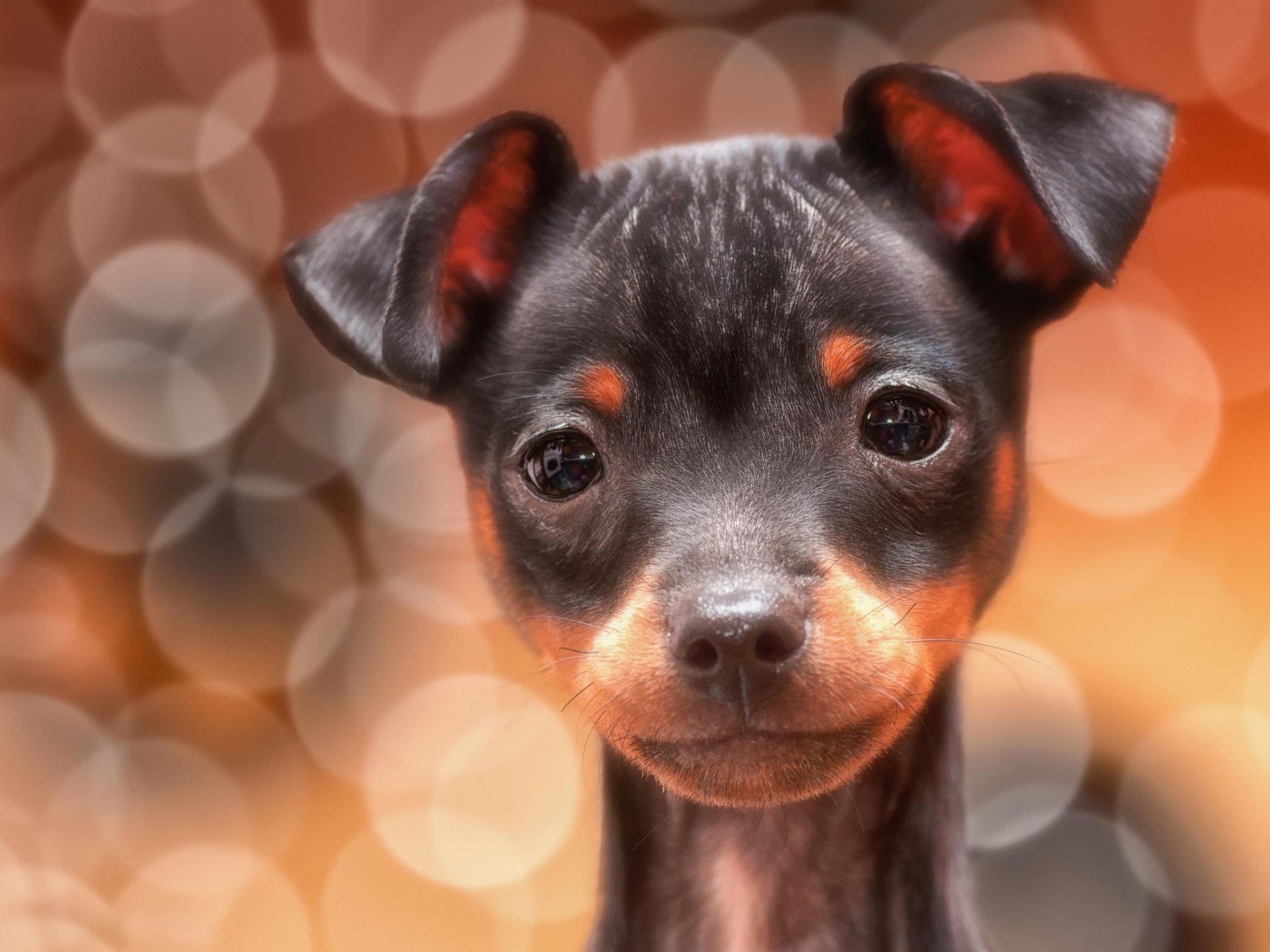 Cute bulldog with pink heels lies on a pillow with a devoted look