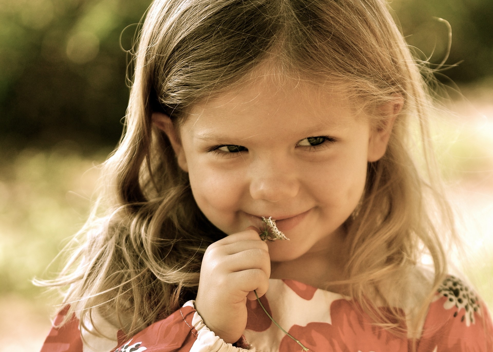 A girl with a daisy. the girl is smiling, a good summer photo