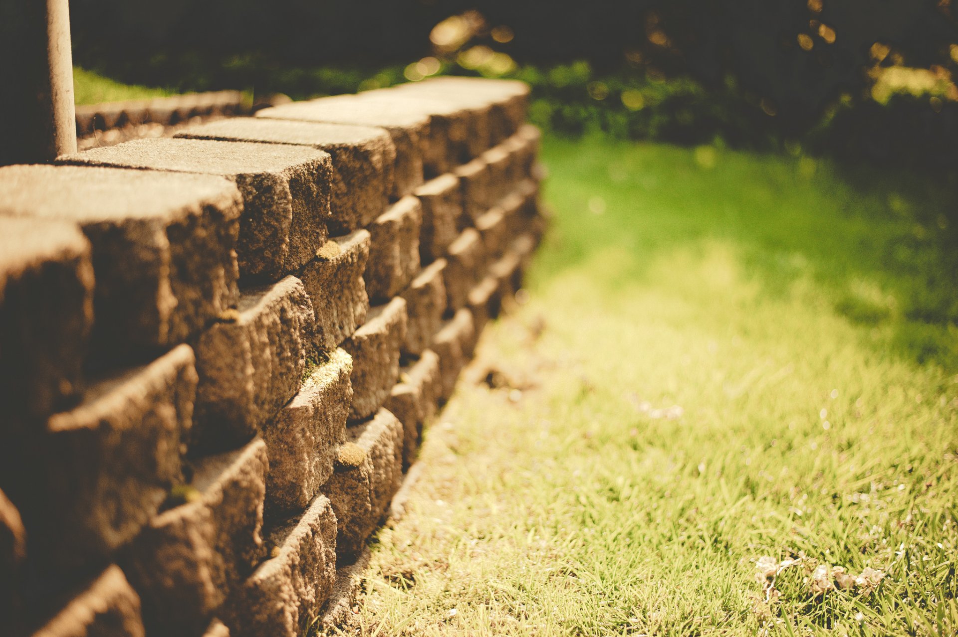 Lilac flowers of clematis in the masonry of stonesLilac flowers of clematis in the masonry of stones