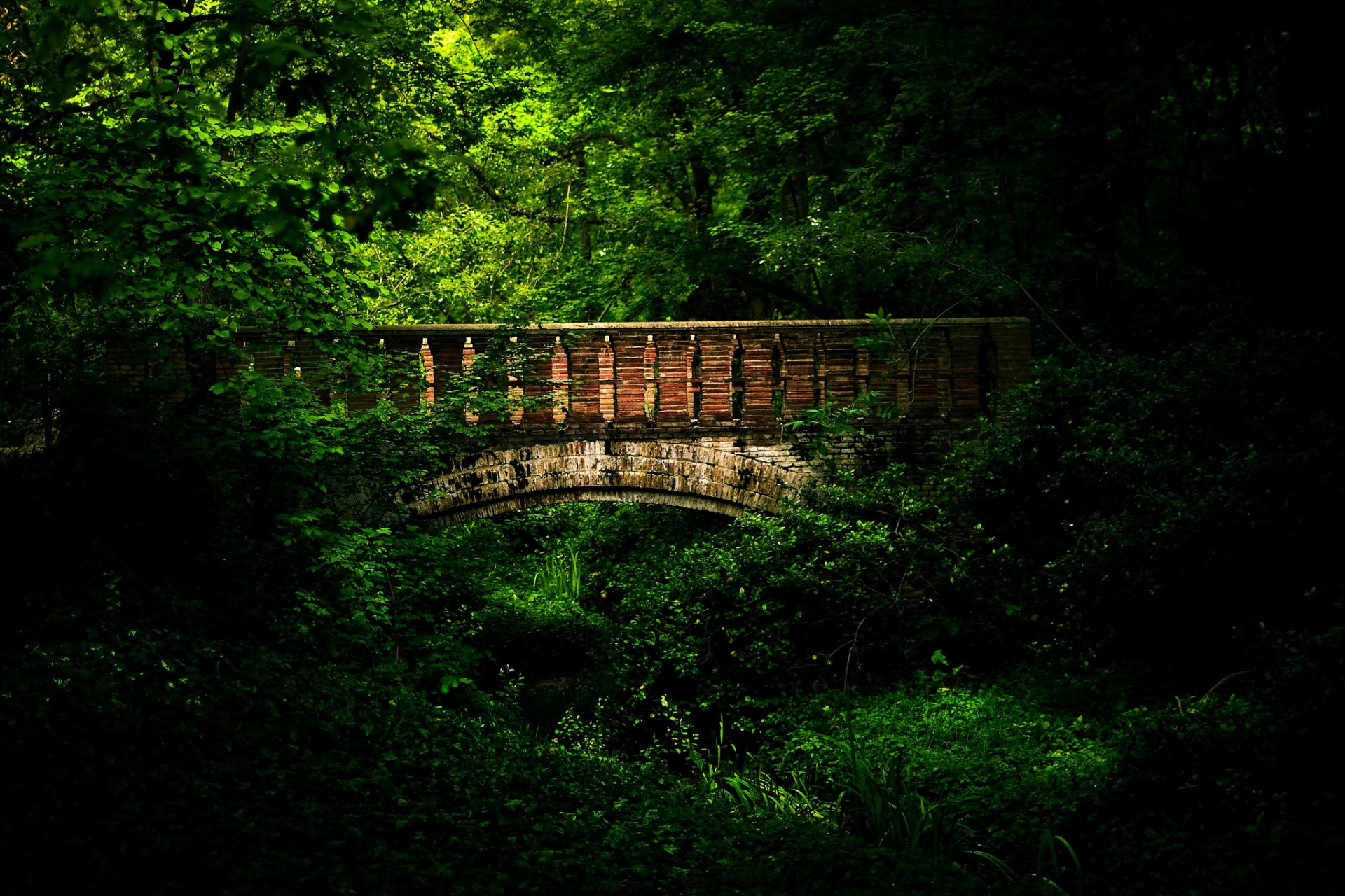 A bridge in a dense forest