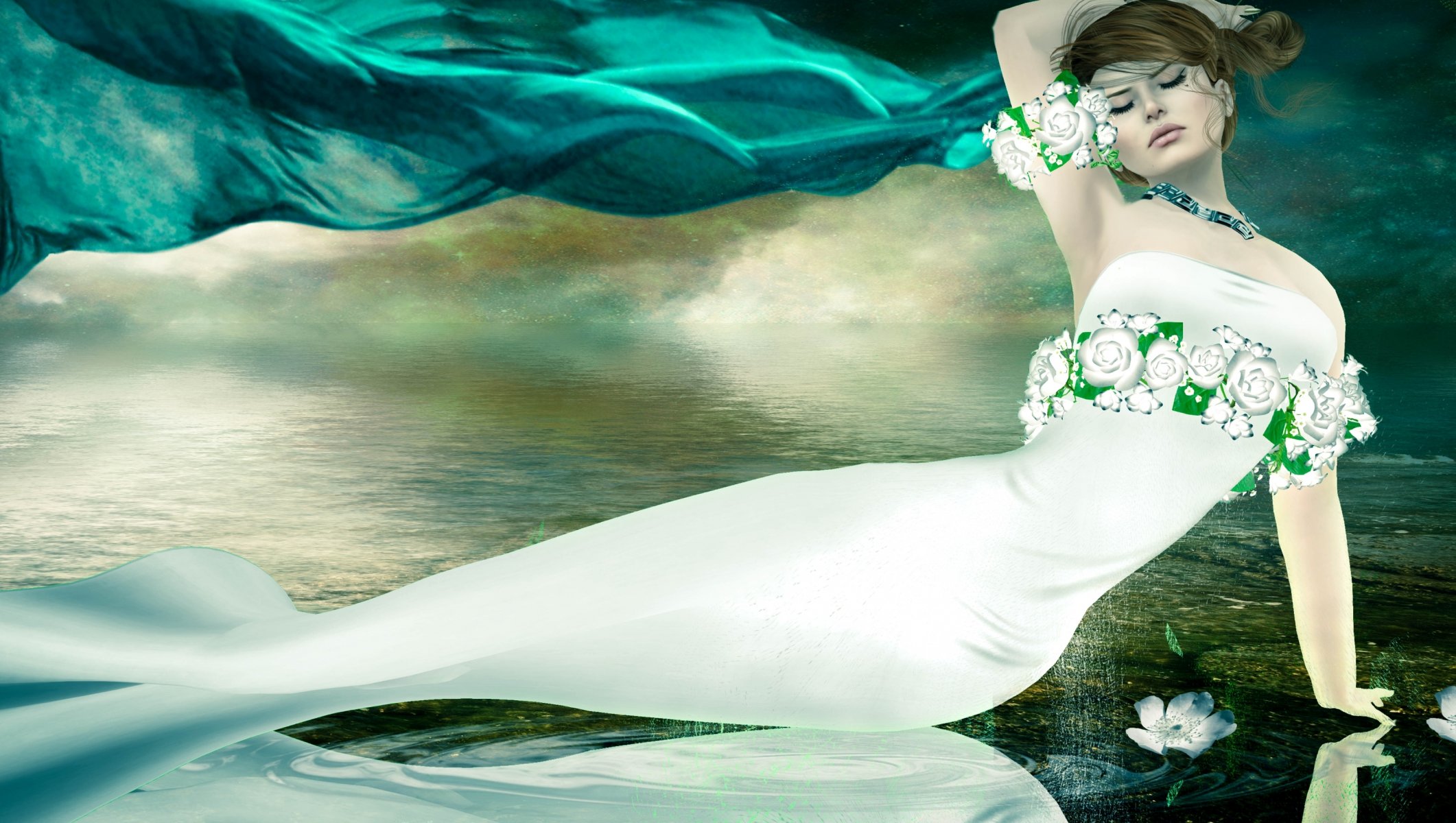 Christmas trees on the lake shore against the background of mountainsChristmas trees on the lake shore against the background of mountains