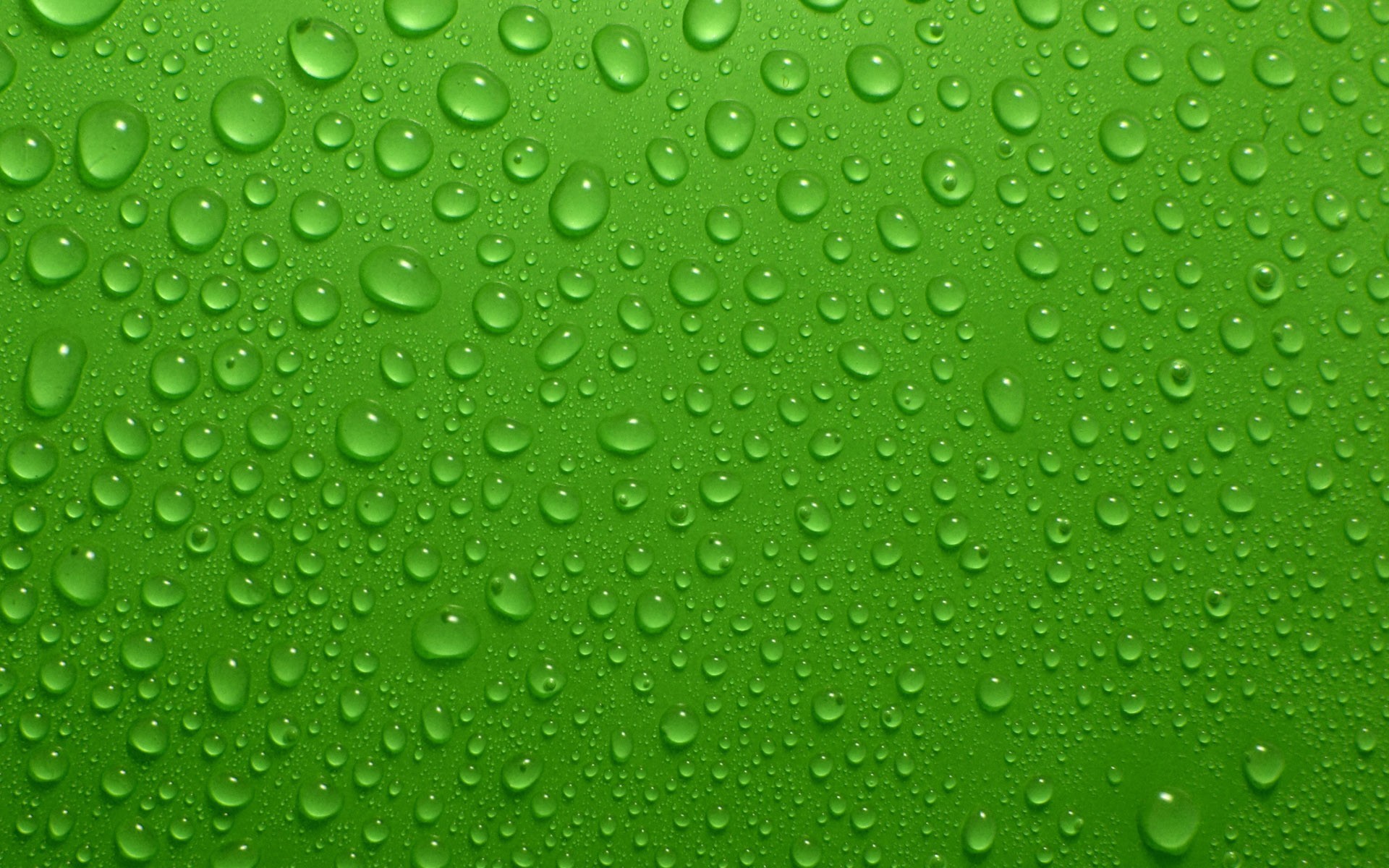 Transparent drops on a green background