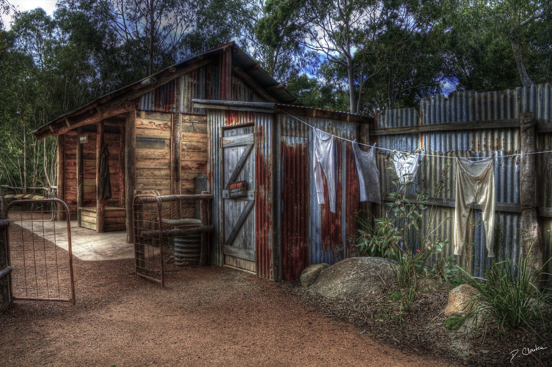 A rustic house with clothes hanging on a rope to dryA rustic house with clothes hanging on a rope to dry