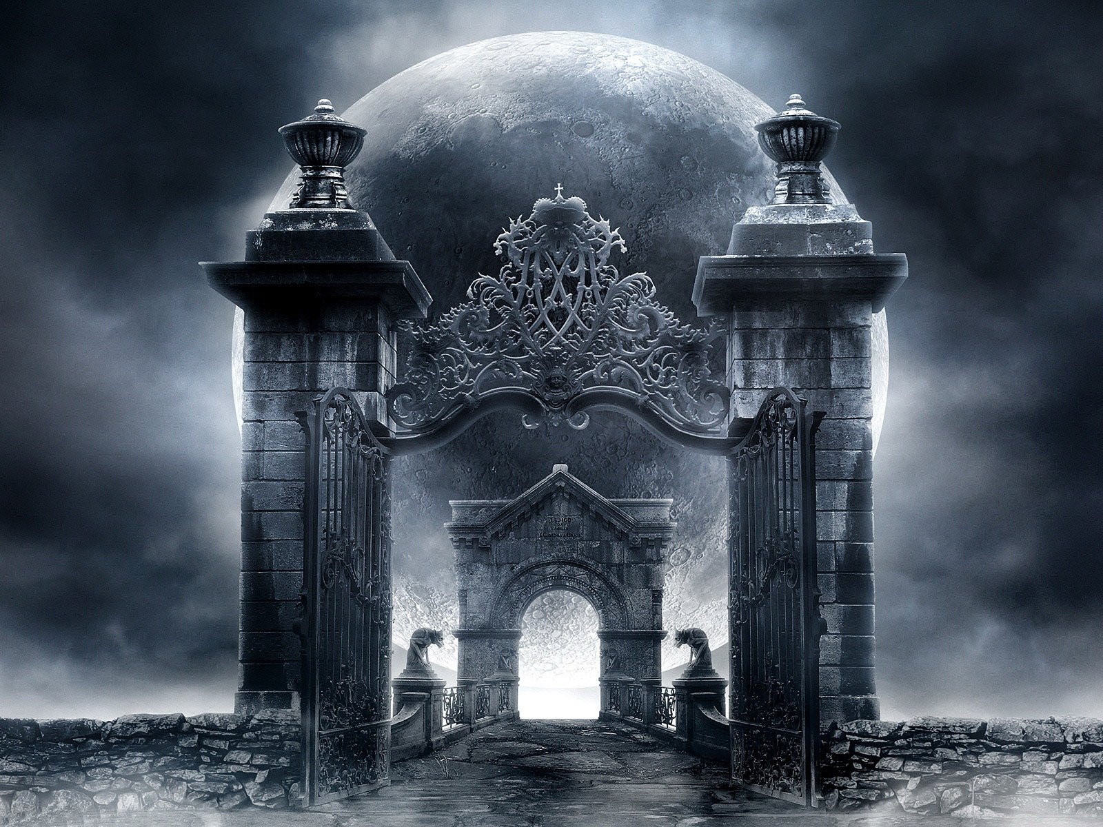 A warrior with a sword in front of a portal to another worldA warrior with a sword in front of a portal to another world