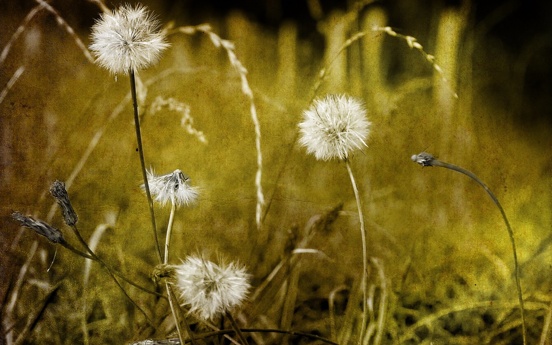Fluff on the field when the wind they fly in different directionsFluff on the field when the wind they fly in different directions
