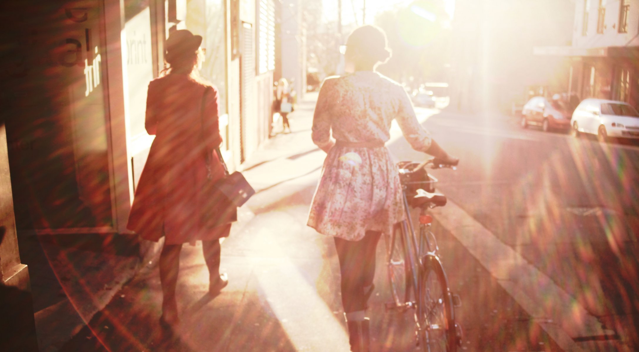 On a crowded street, a girl in the style of a japanese womanOn a crowded street, a girl in the style of a Japanese woman