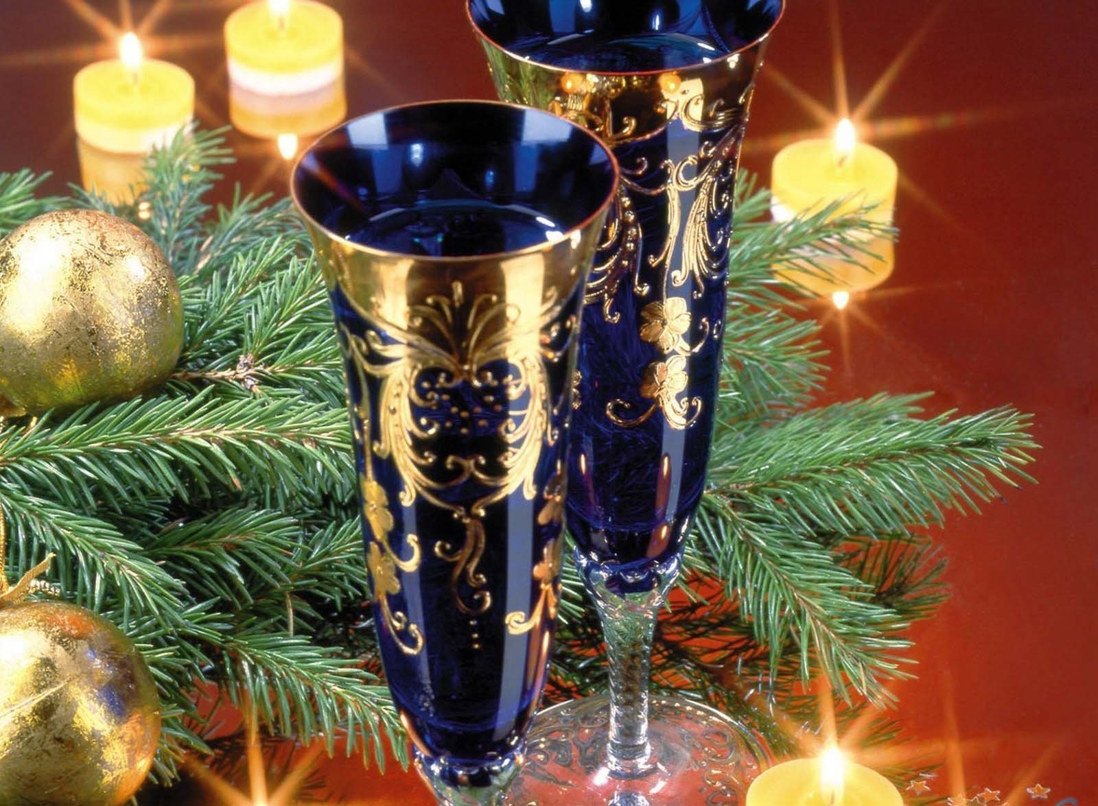 Christmas glasses with a branch of a fir tree and ballsChristmas glasses with a branch of a fir tree and balls