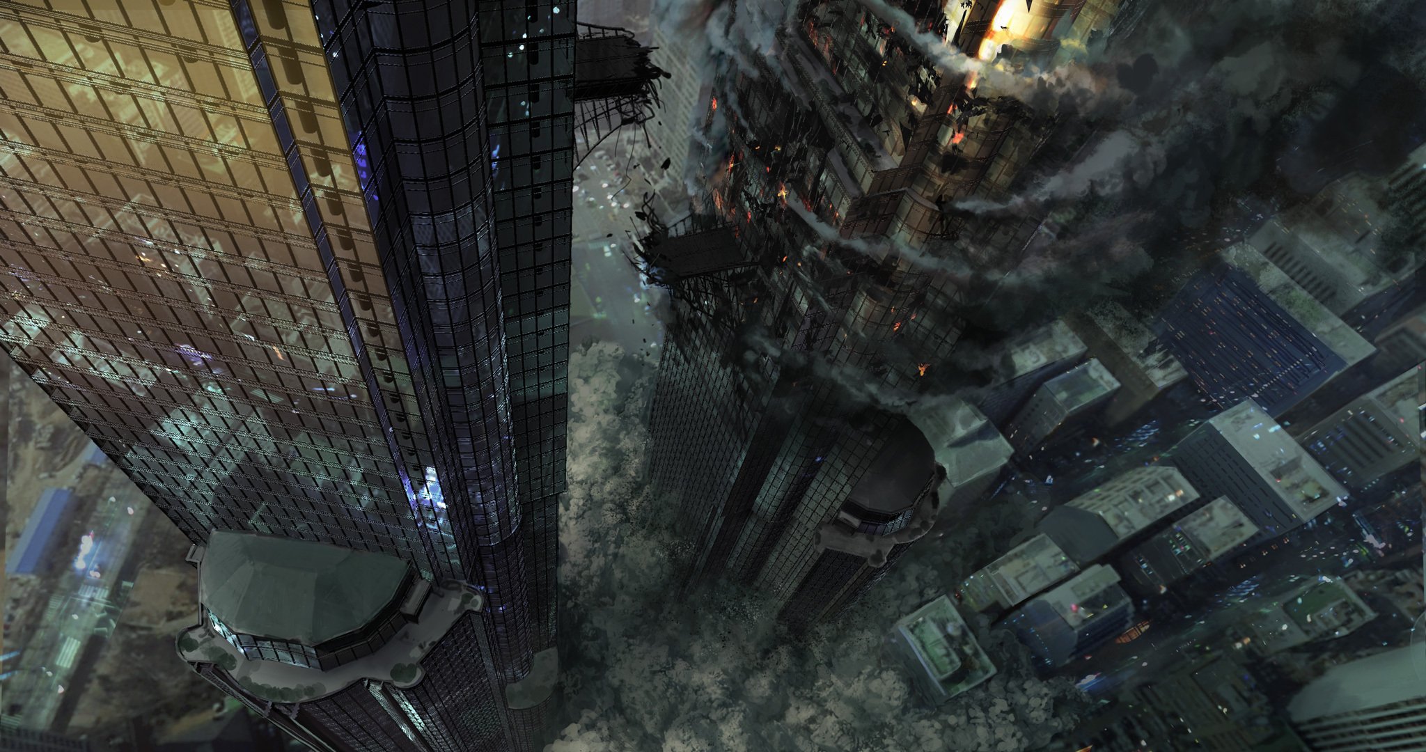The dark city. Fire in the sun