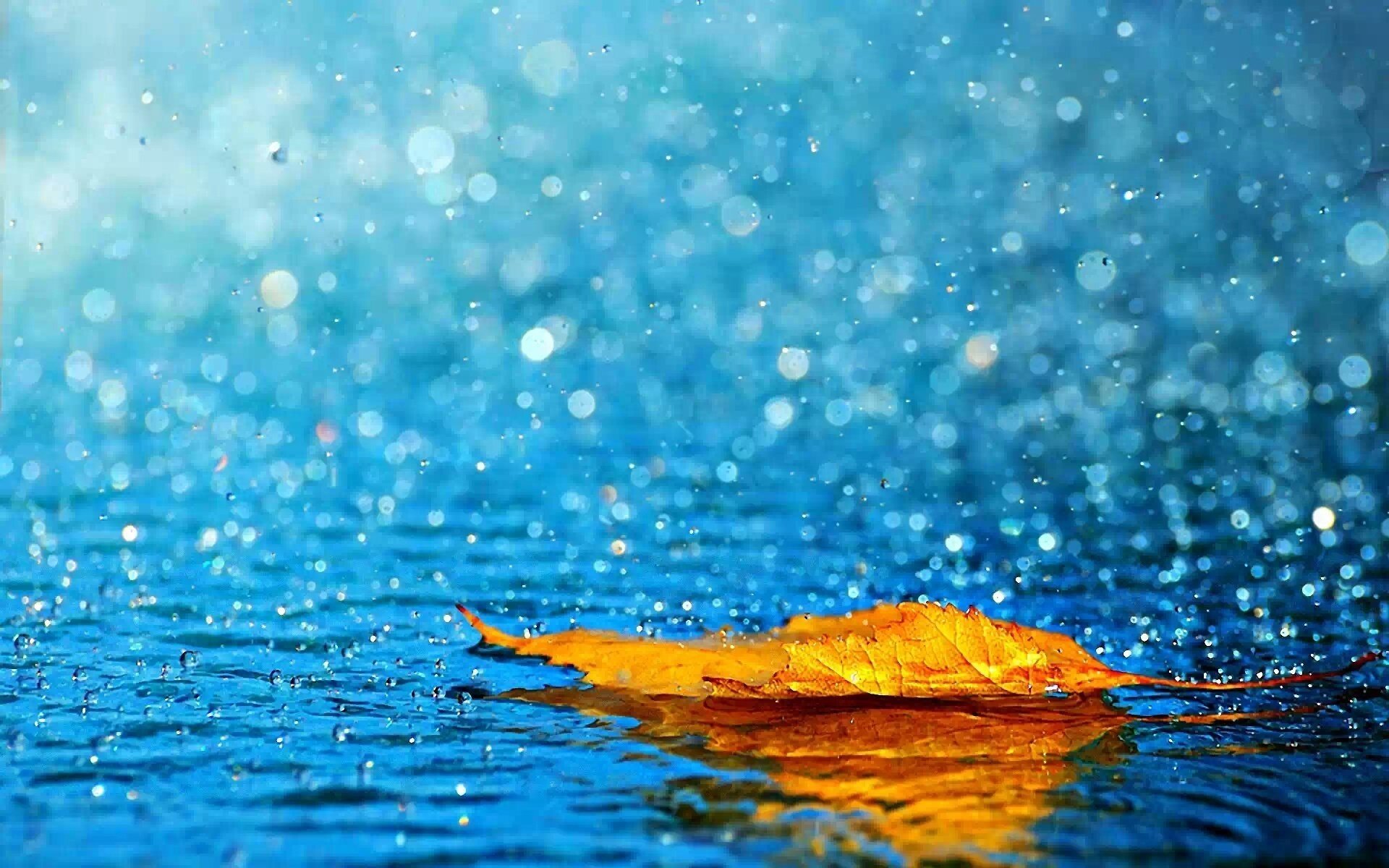 A yellow leaf floating on clear rainwater