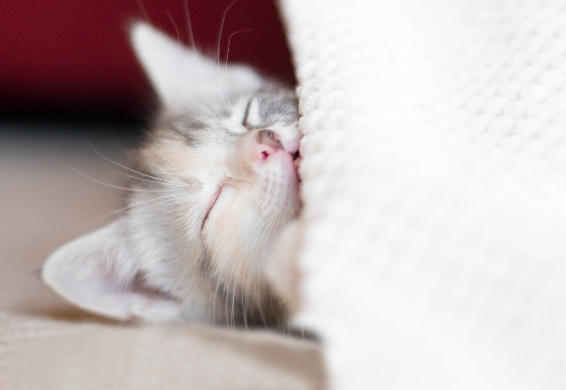 Cute kitten sleeping on a blanket