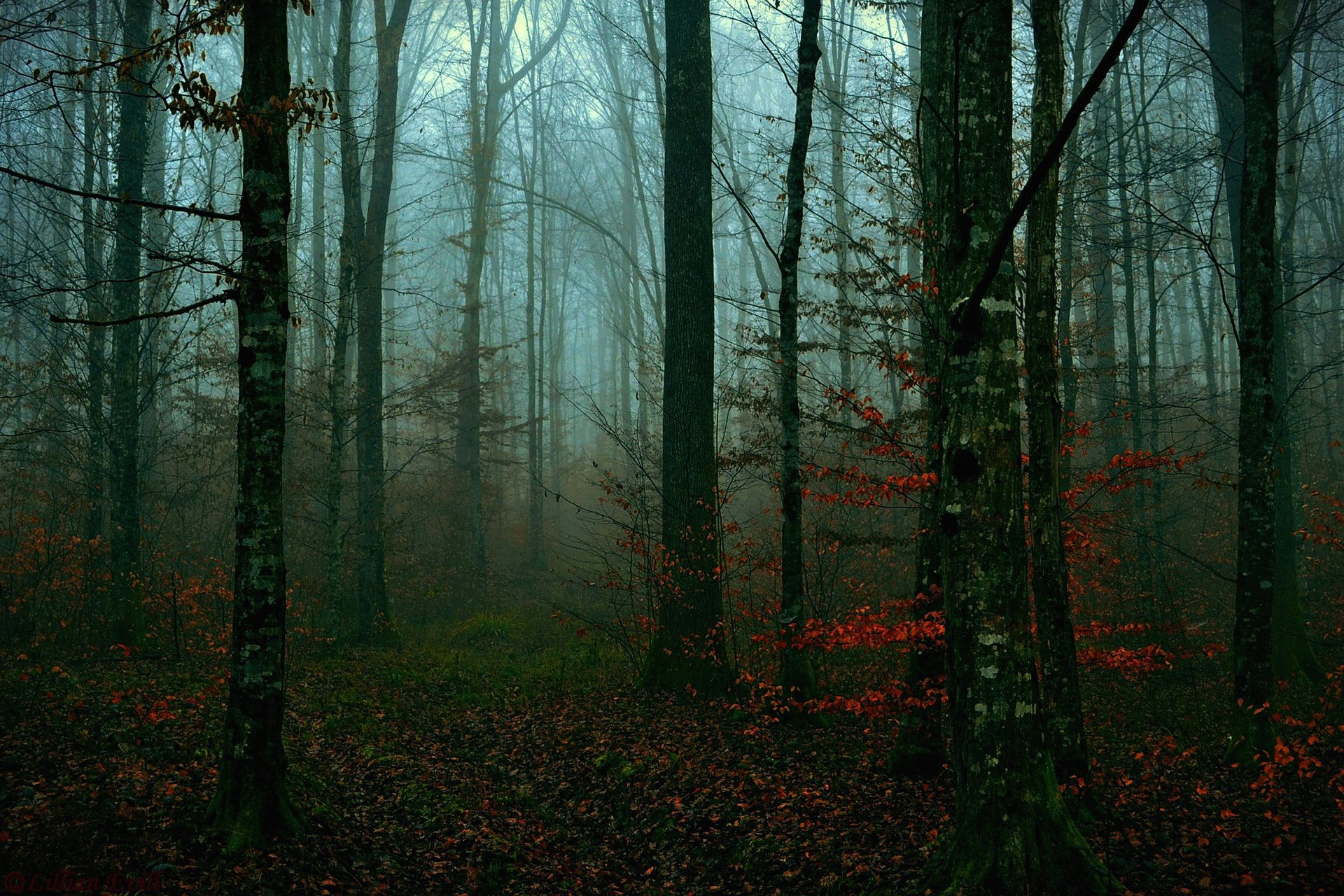 The rays of the sun break through the forest treesThe rays of the sun break through the forest trees