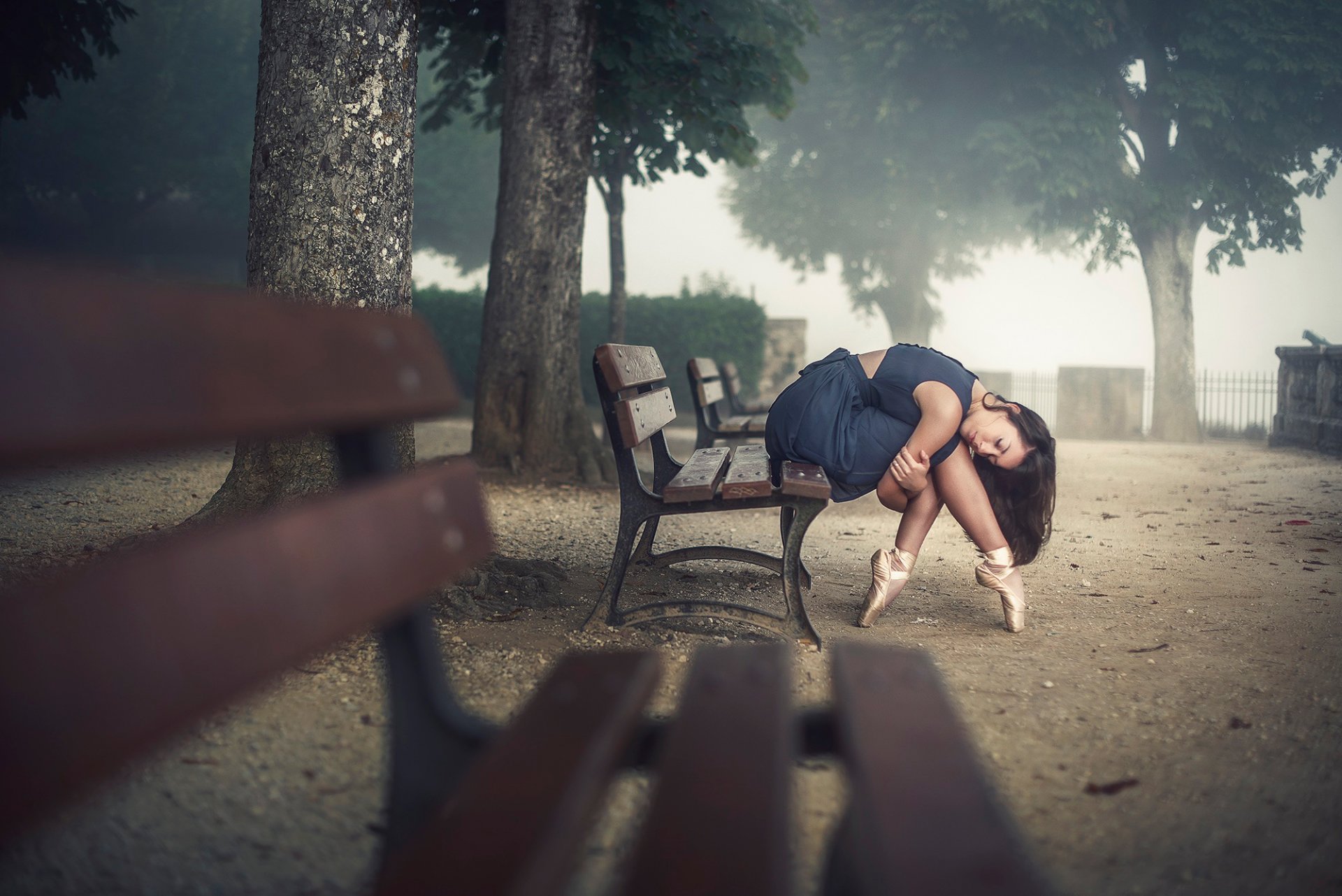 A girl on a chair in a field against the background of sunsetA girl on a chair in a field against the background of sunset