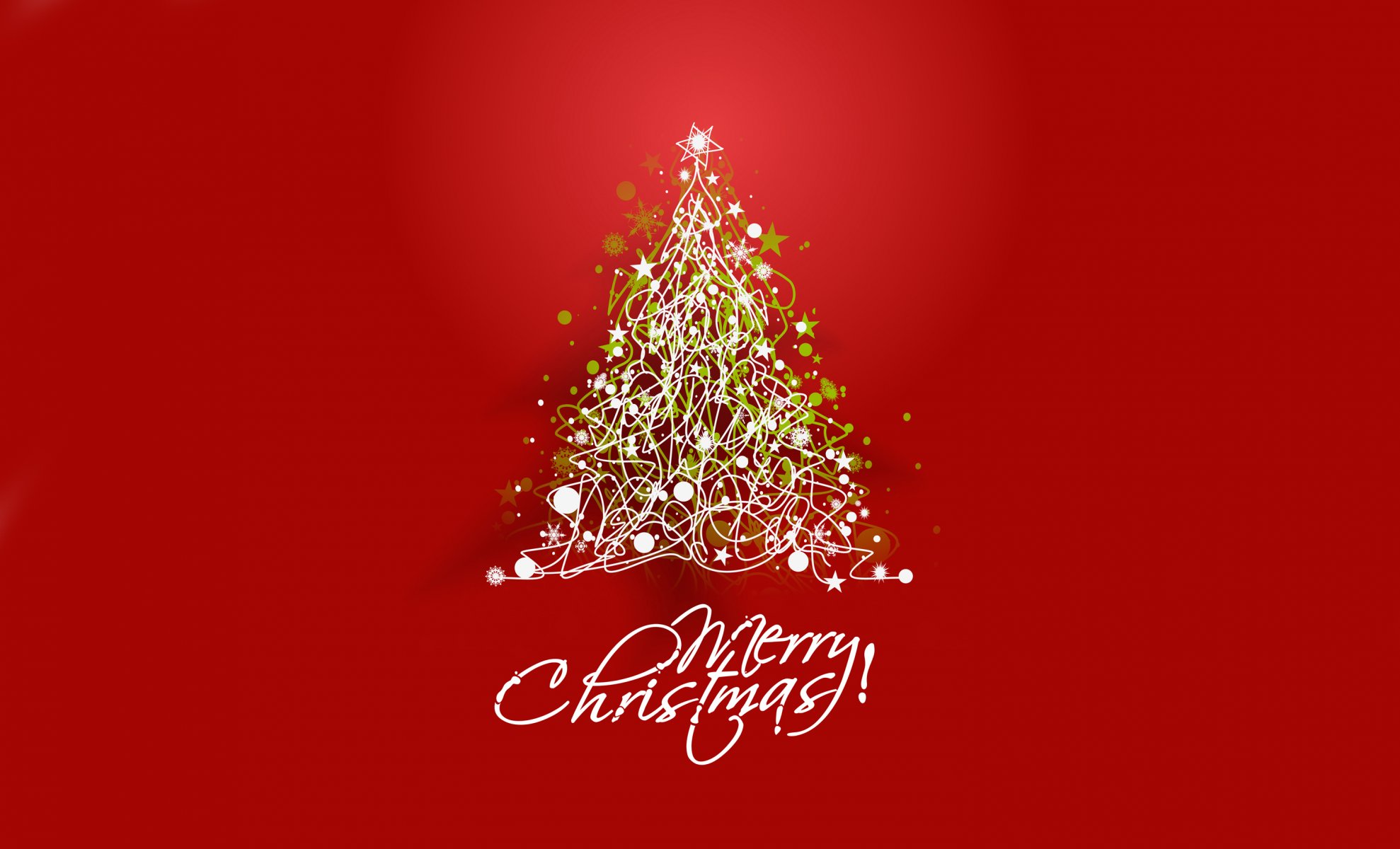 Golden christmas tree on a red background with congratulationsGolden Christmas tree on a red background with congratulations