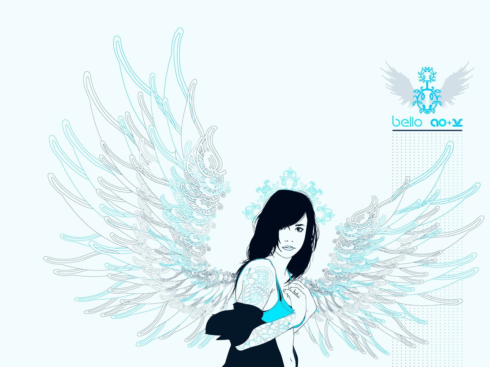 Angel girl in feathers with wings on a background of lightAngel girl in feathers with wings on a background of light