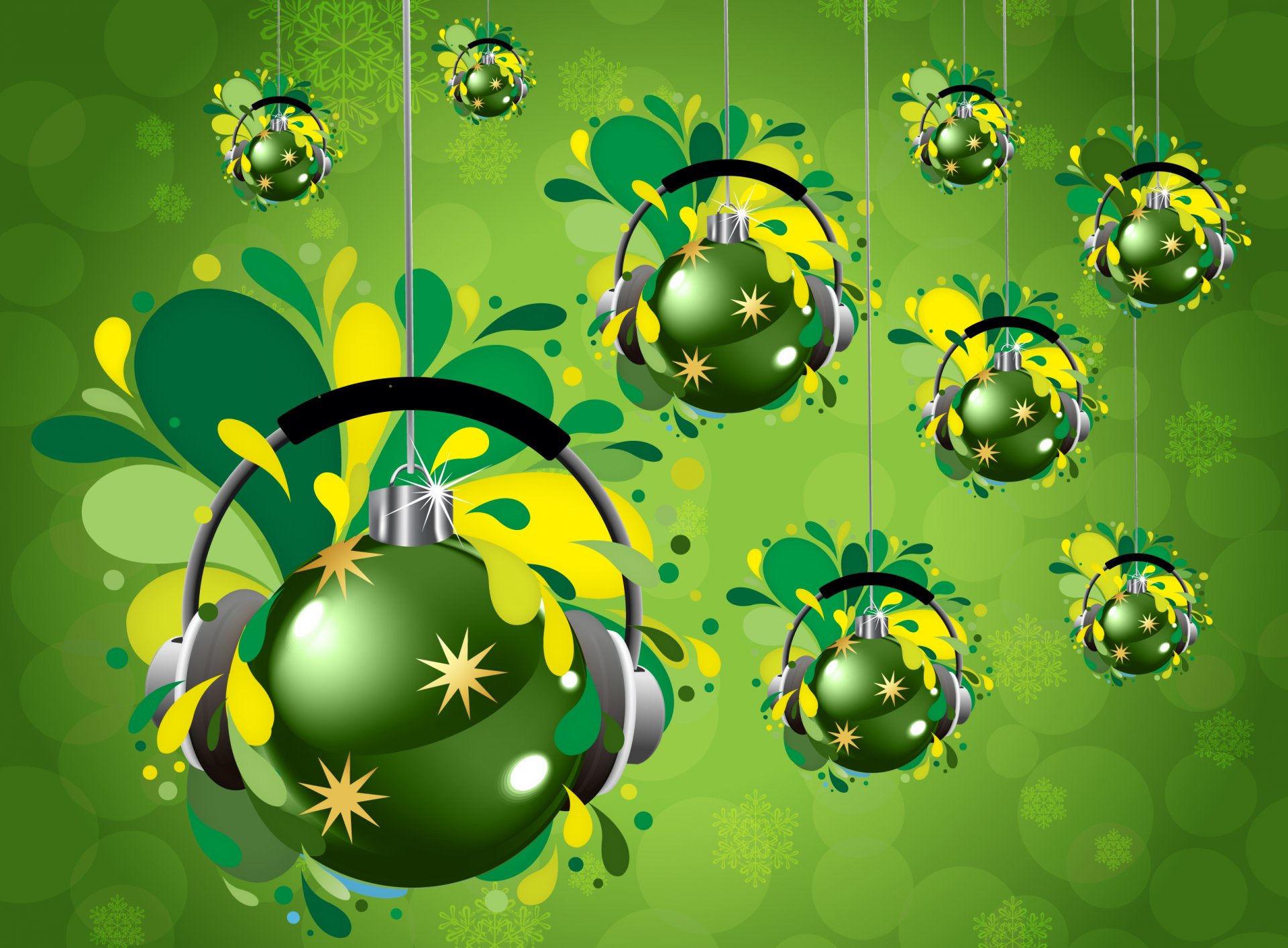 A painted picture of green Christmas balls