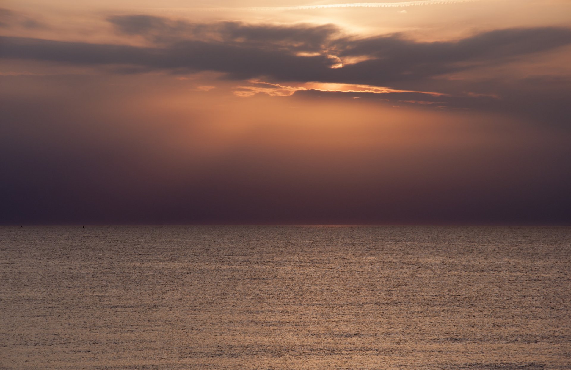 The sun's rays are breaking through on the sea horizonThe sun's rays are breaking through on the sea horizon