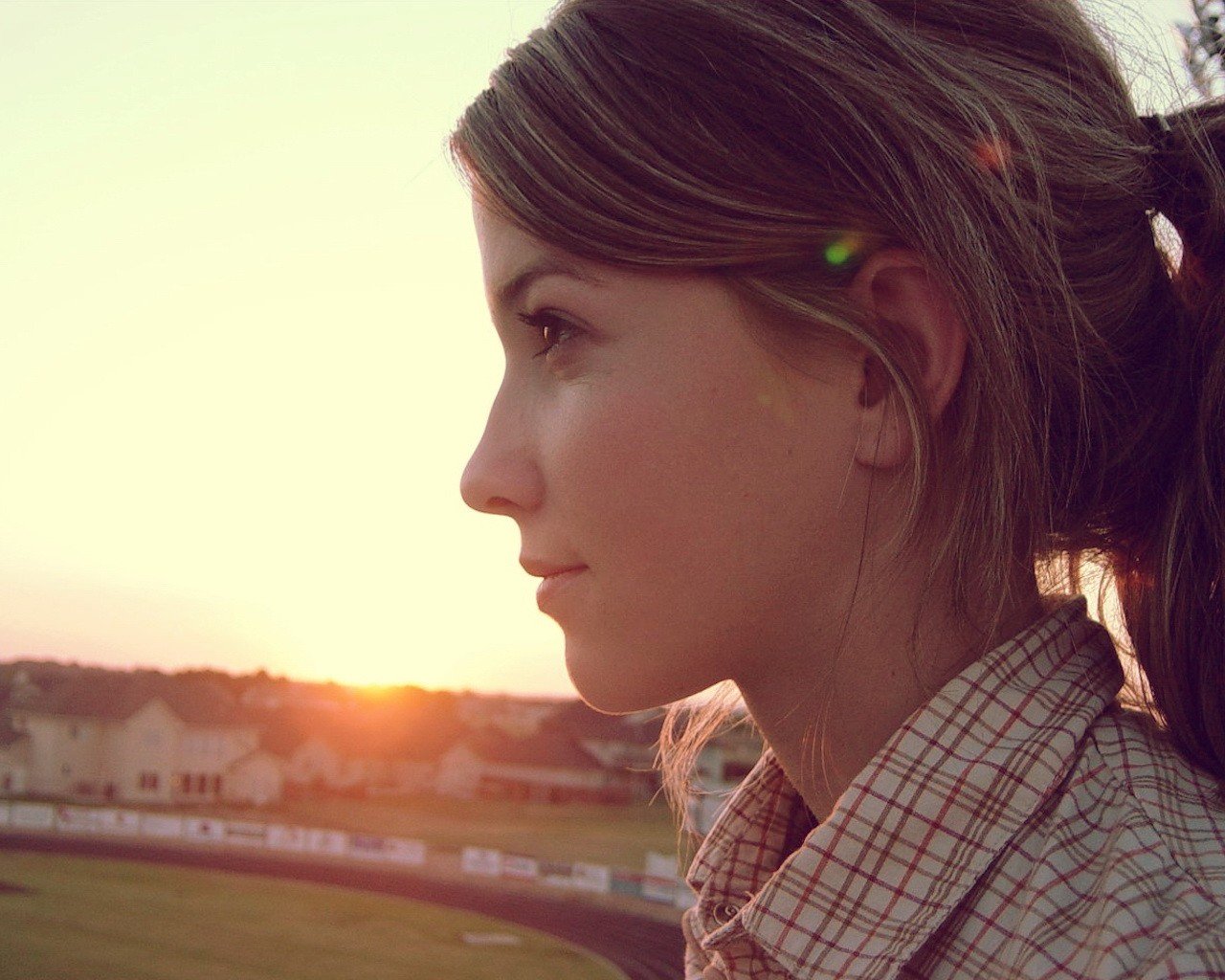 Rear view of a girl against a background of red-orange texturesRear view of a girl against a background of red-orange textures