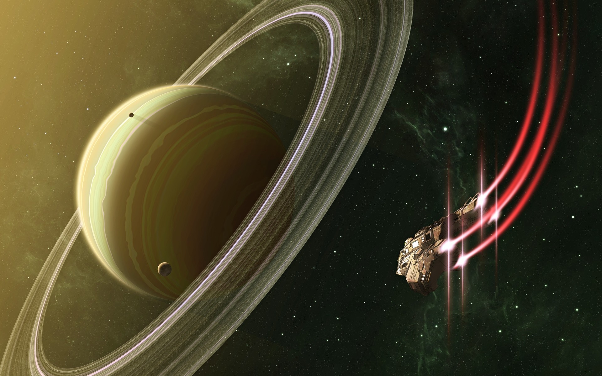 A flash of light in space and a planet with rings