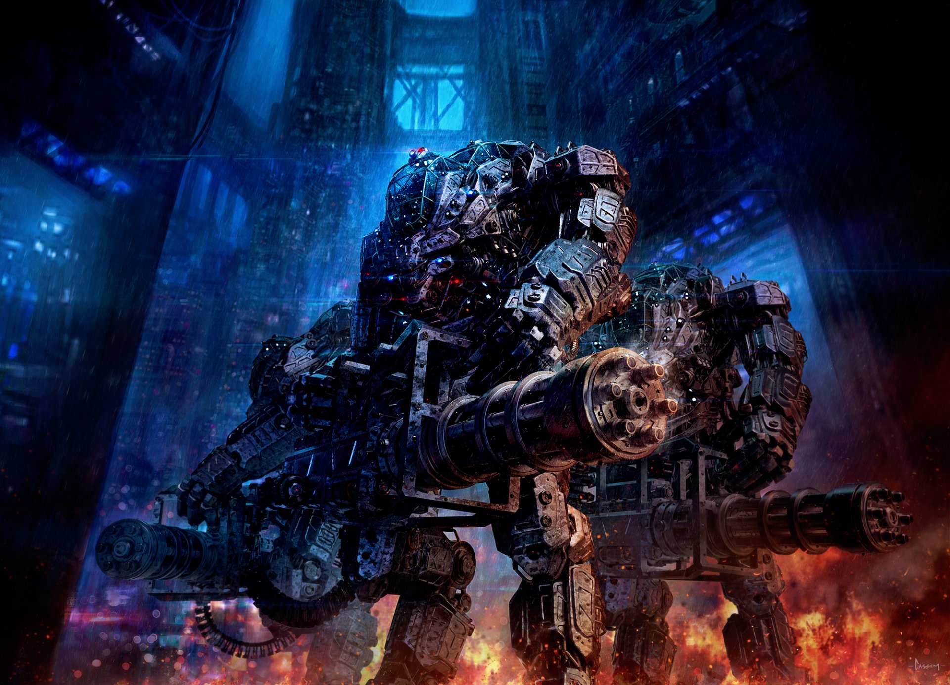 A fantasy picture with the image of a combat robot