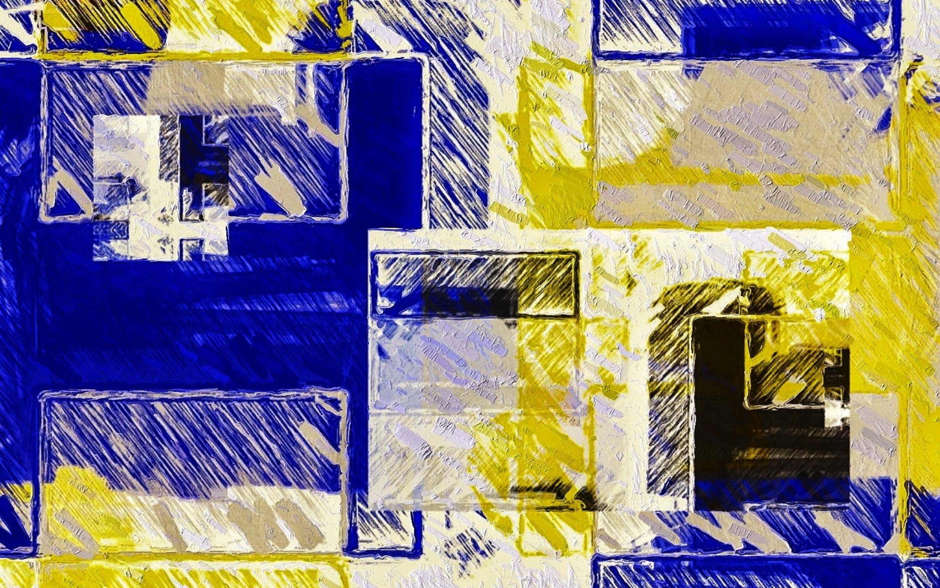 Picture with yellow, blue squares