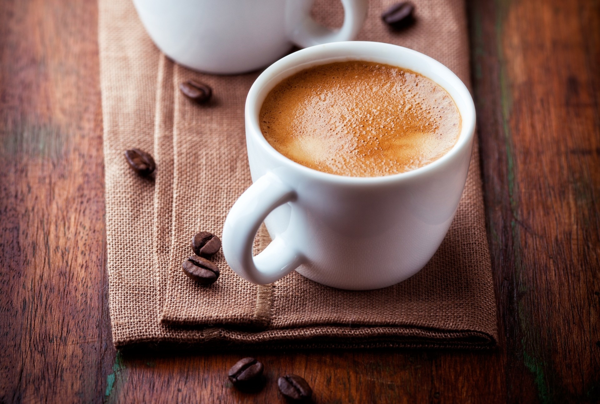 Coffee beans and a stack of chocolate bars tied with a ribbonCoffee beans and a stack of chocolate bars tied with a ribbon