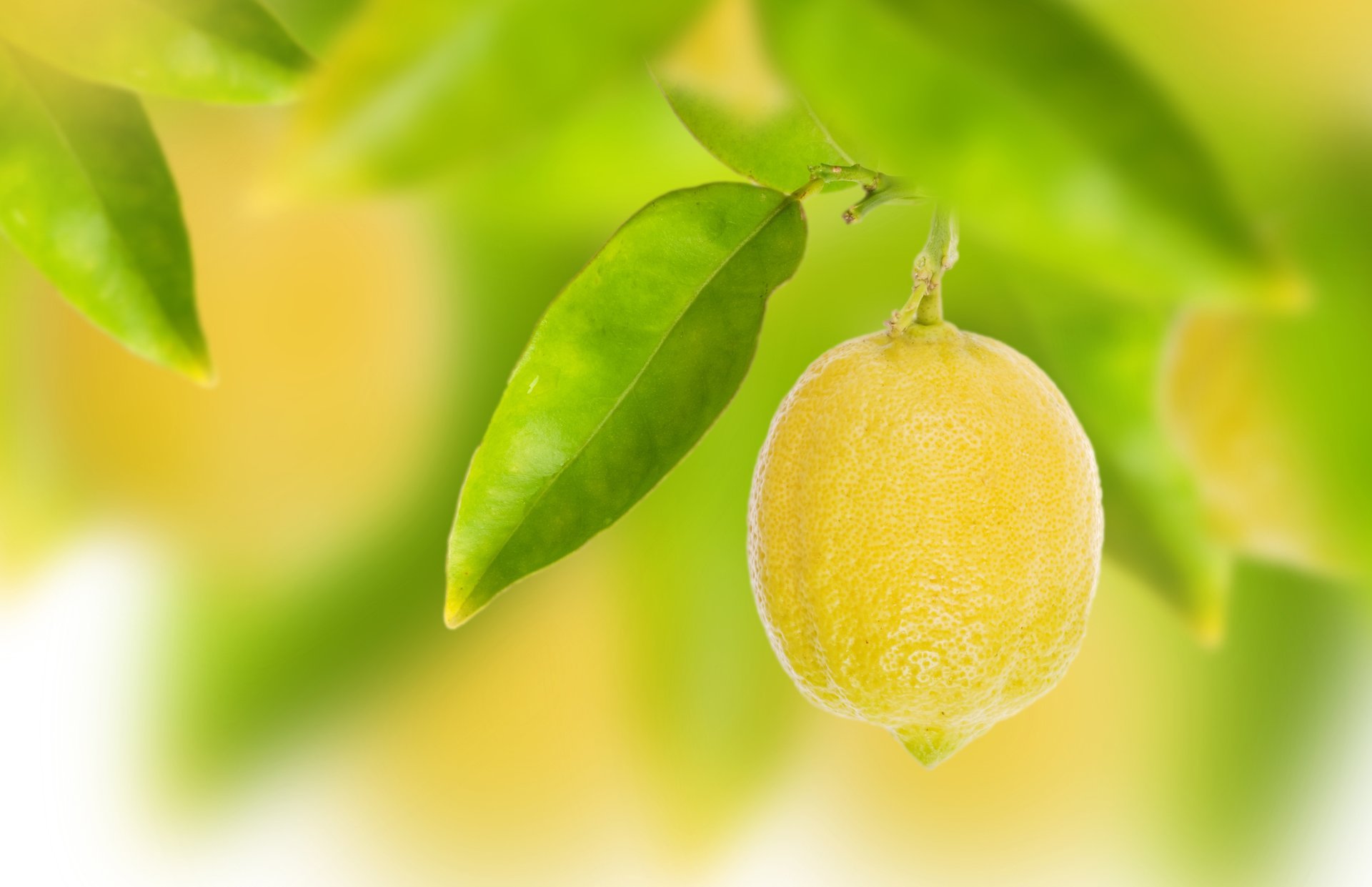 Lemon with leaves on a blurry background