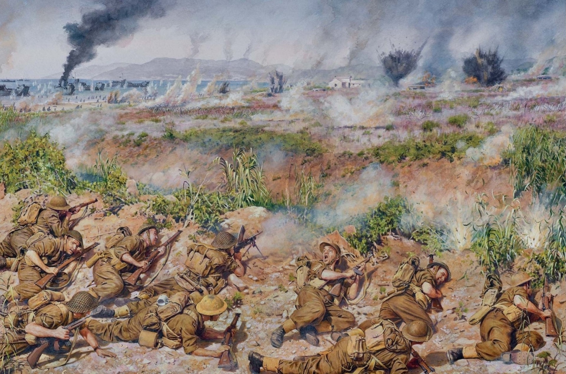 Houses on a rocky shore. Boats in the bay. Blue sky. Green foliage