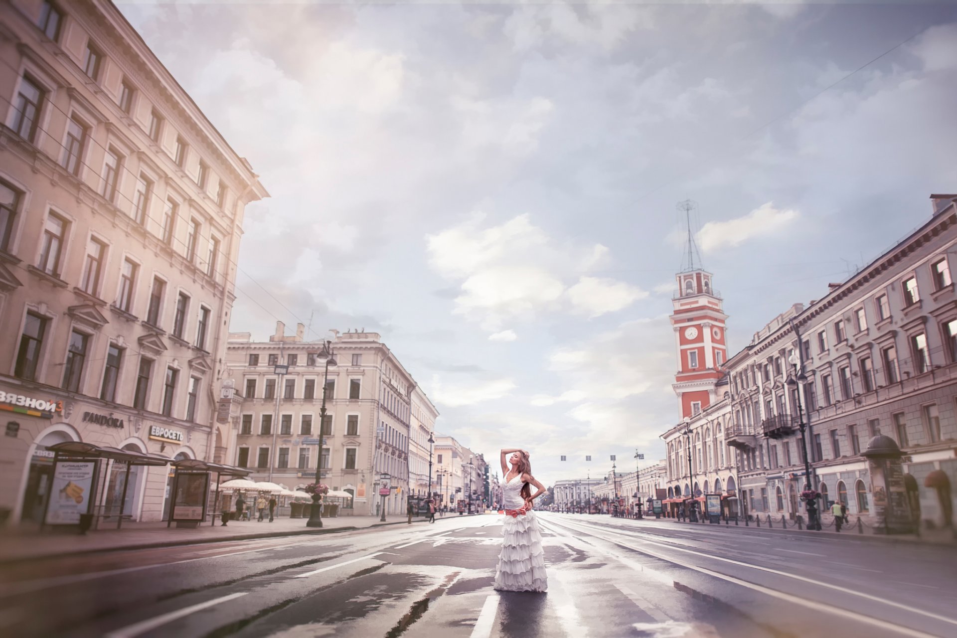 The bride goes to the length of the railway tracksThe bride goes to the length of the railway tracks