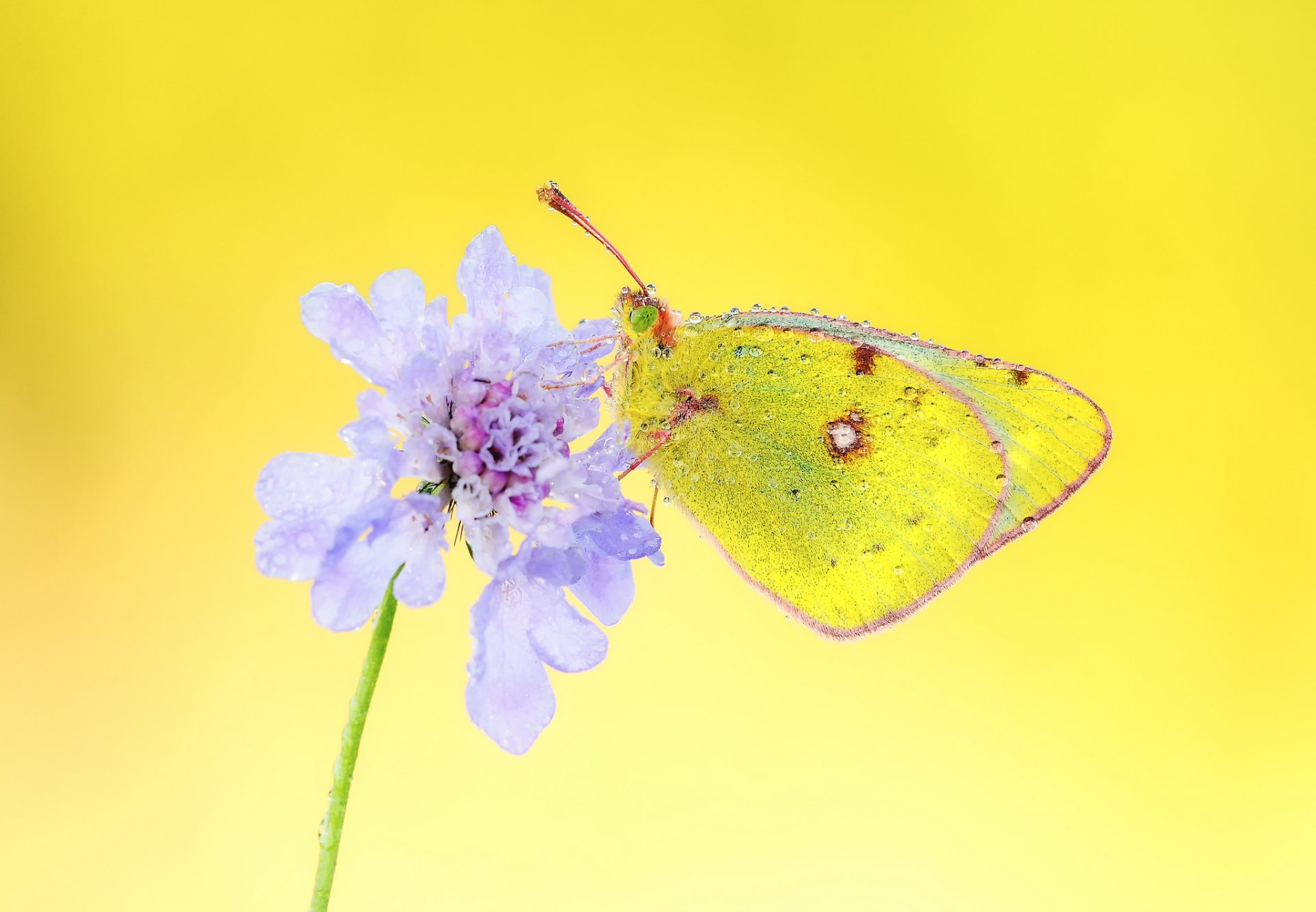 Butterfly on a dandelion with rain highlights in the grassButterfly on a dandelion with rain highlights in the grass