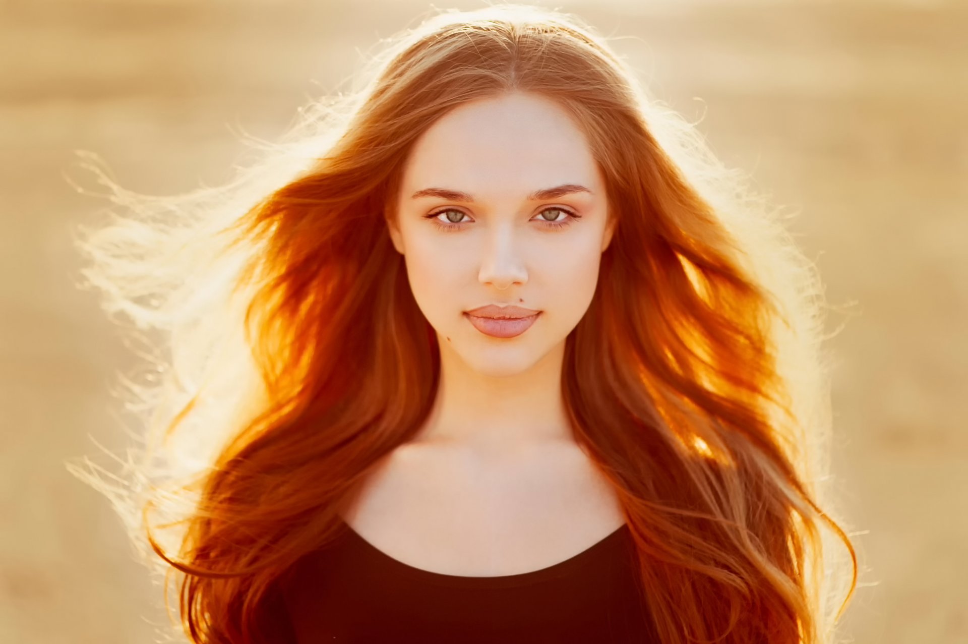 Portrait of a red-haired girl with lighting from behindPortrait of a red-haired girl with lighting from behind