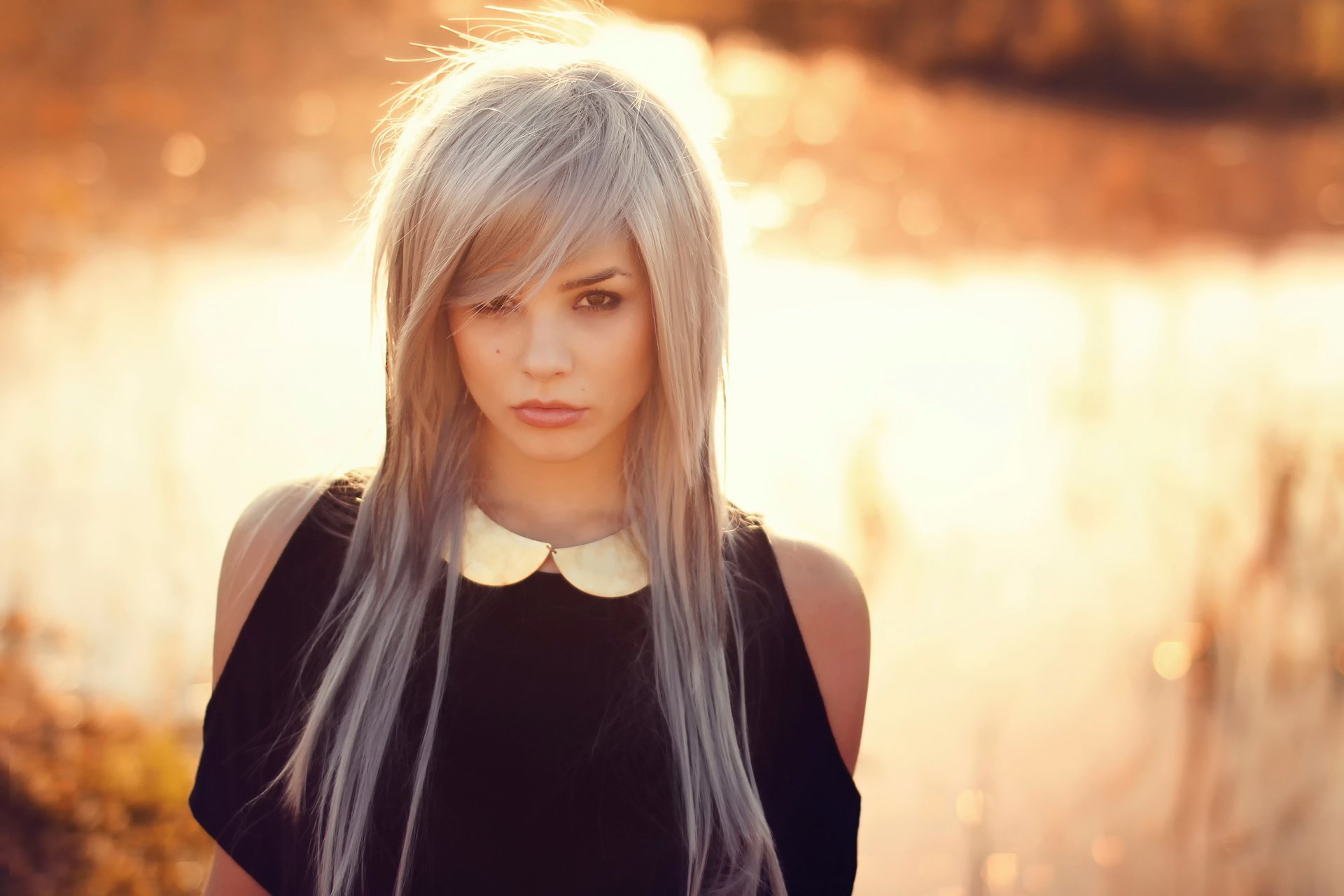A girl in a dress on the river bank