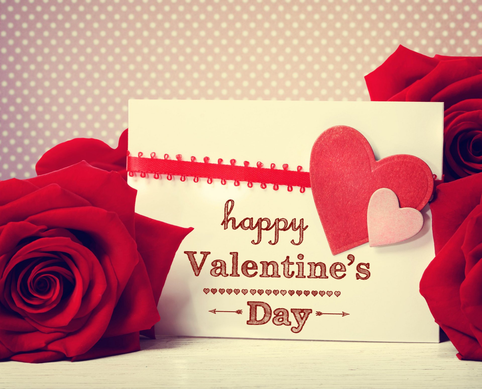 A postcard with a heart and red roses