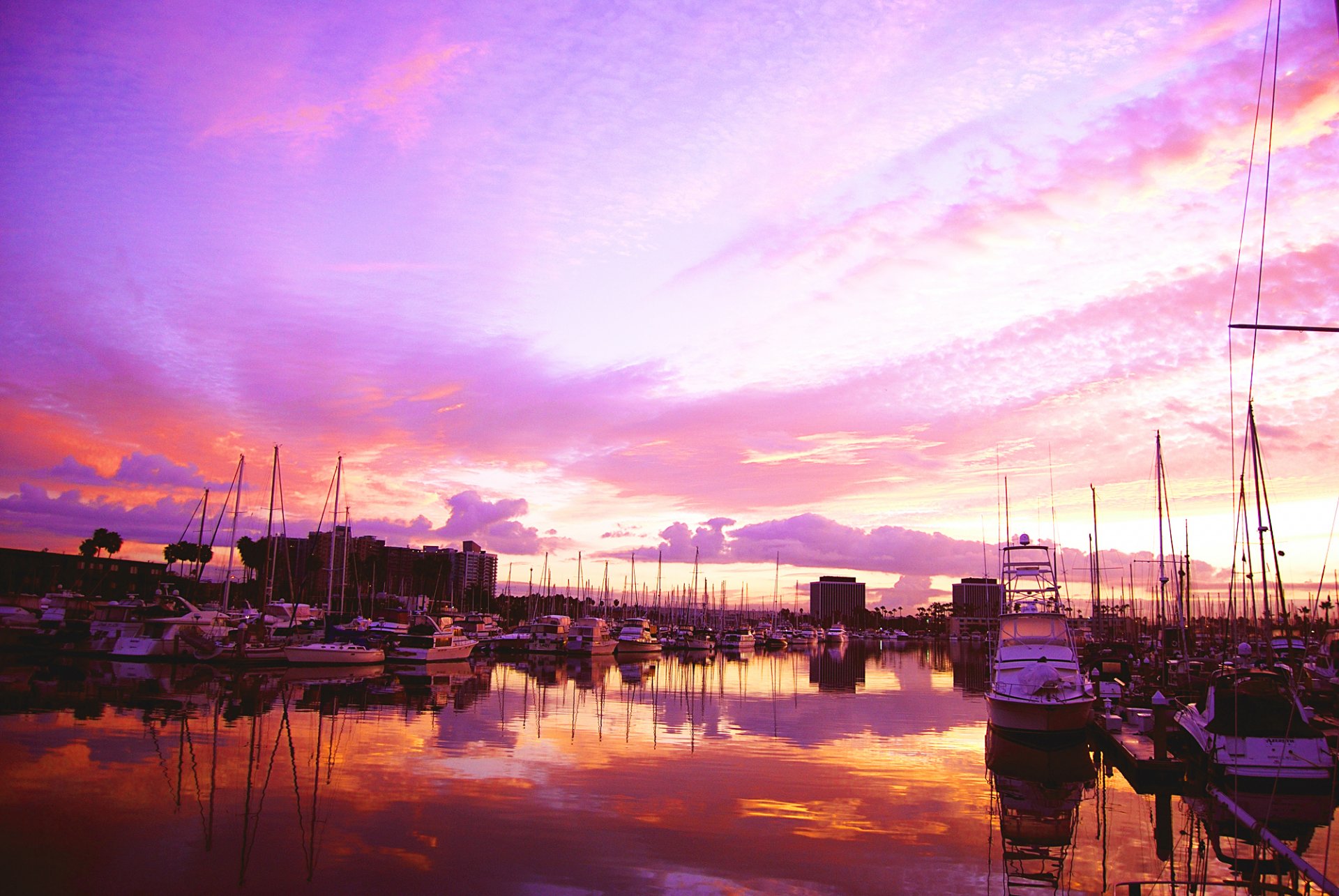 Seaport with orange sunset