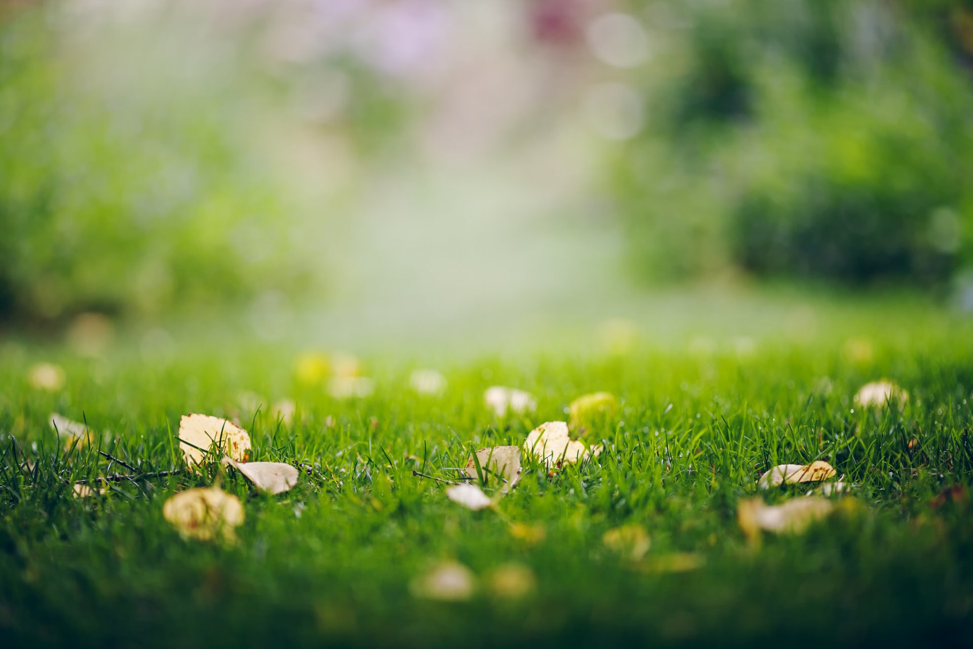 Morning dew on the green grass