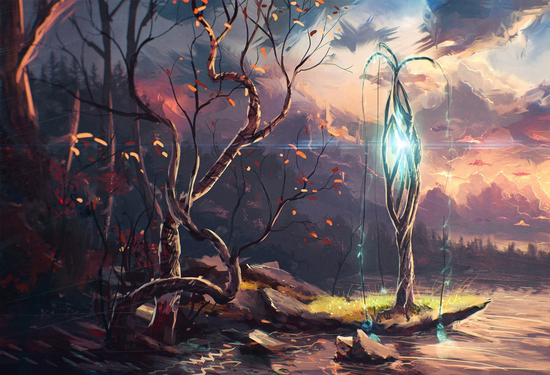 A lonely tree against the background of a magical skyA lonely tree against the background of a magical sky