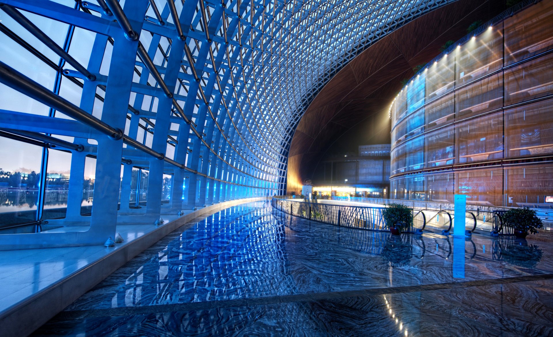 Metal structures around the dome of the building