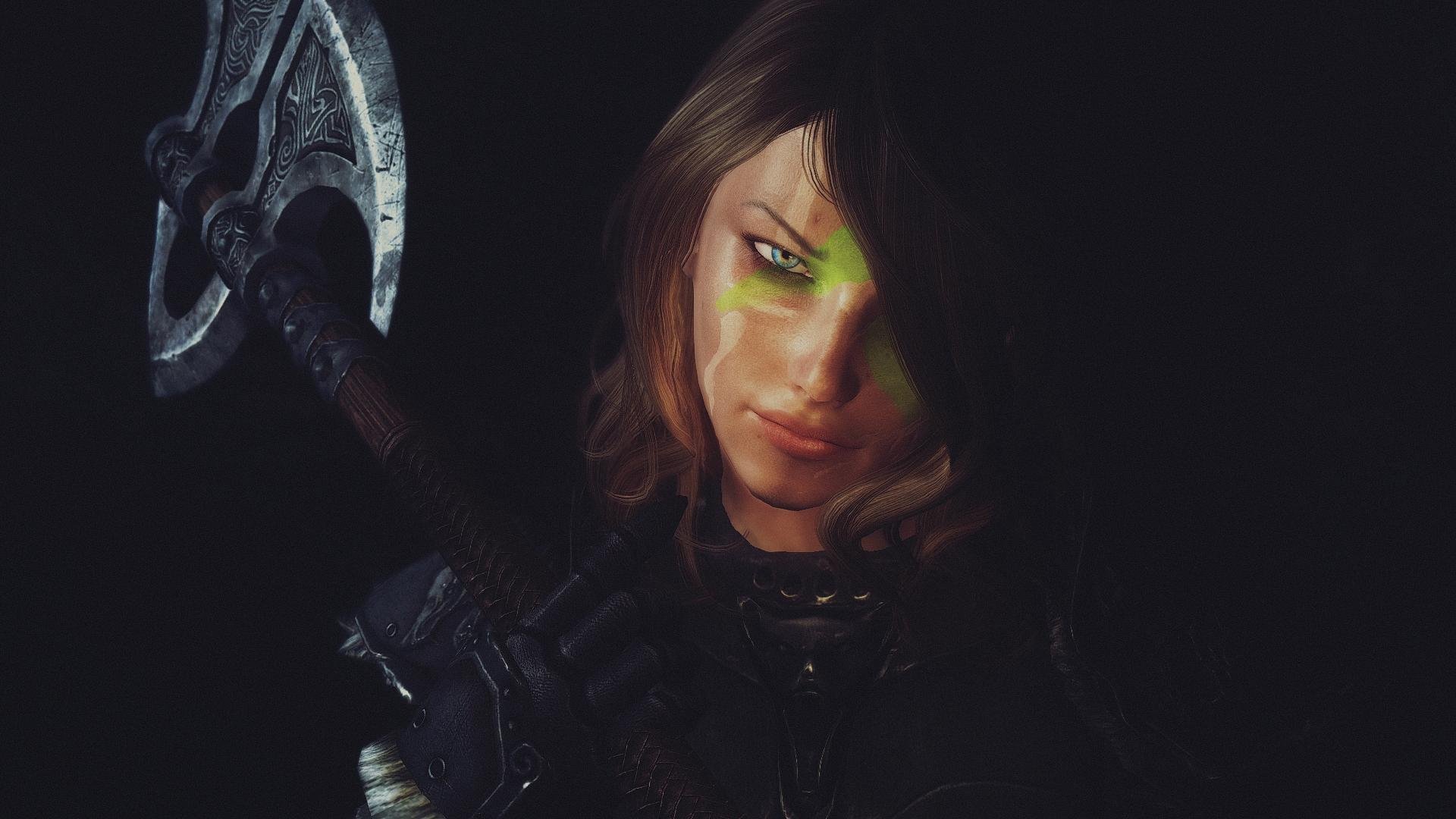 Rendering of a girl with an axe on a black backgroundRendering of a girl with an axe on a black background