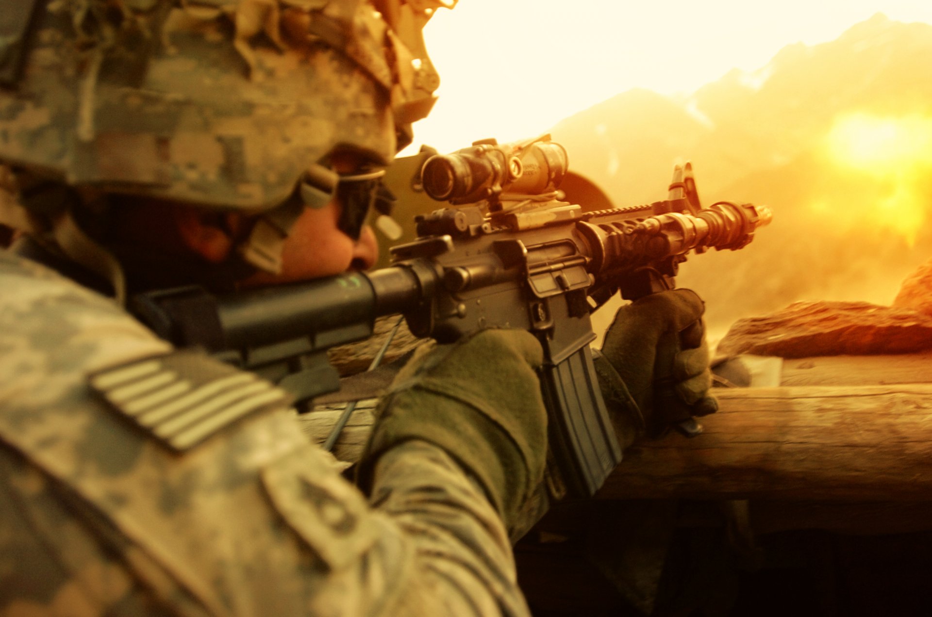 The sight of a soldier in the direction of a shootoutThe sight of a soldier in the direction of a shootout