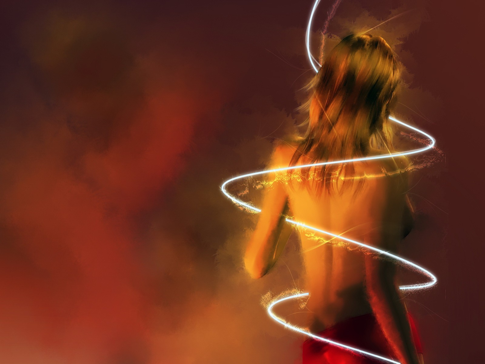 Naked girl from behind in the rain under a black umbrella with her hair down and a tattoo on her left side black and white photoNaked girl from behind in the rain under a black umbrella with her hair down and a tattoo on her left side black and white photo