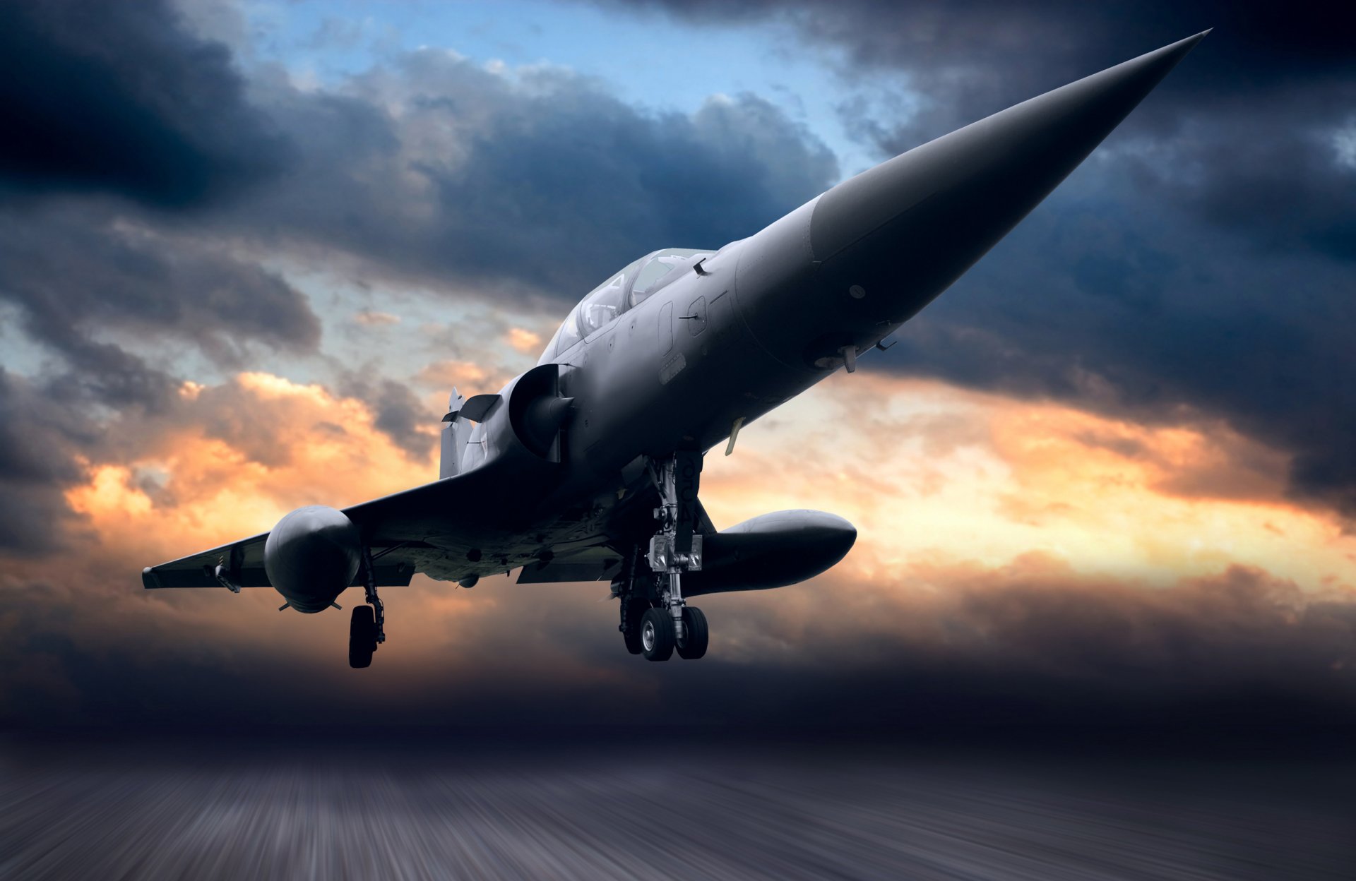 Beautiful military aircraft on the background of cloudsBeautiful military aircraft on the background of clouds