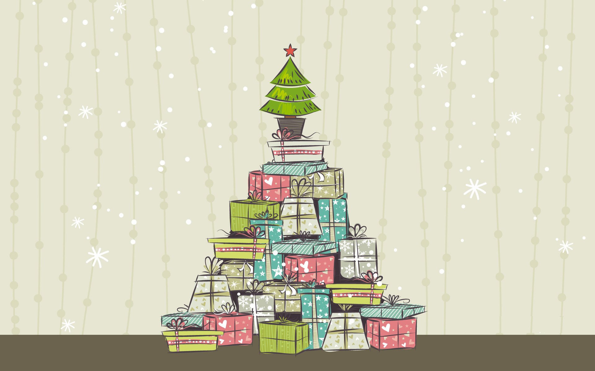 A mountain of new year's gifts and a christmas treeA mountain of New Year's gifts and a Christmas tree